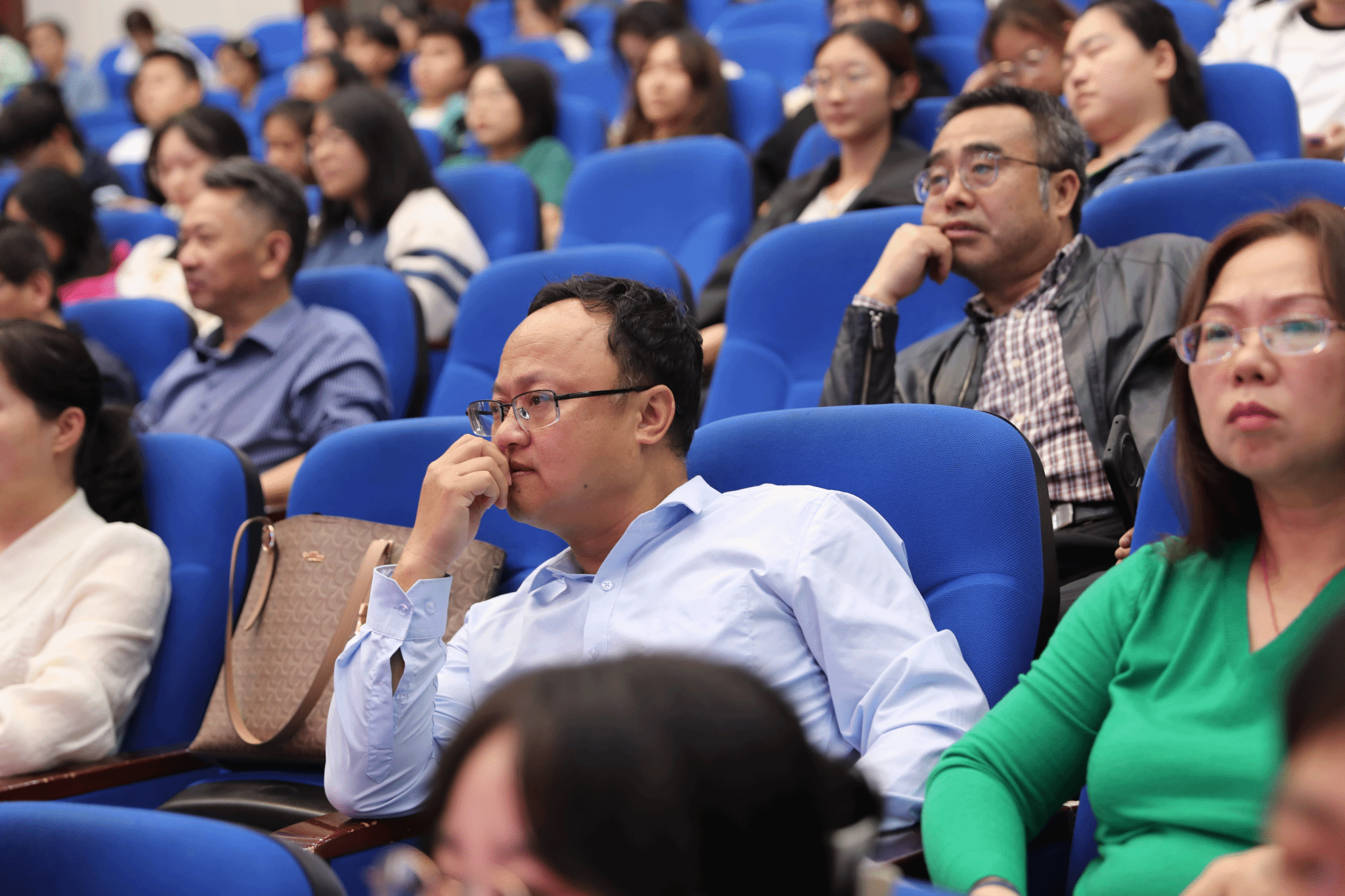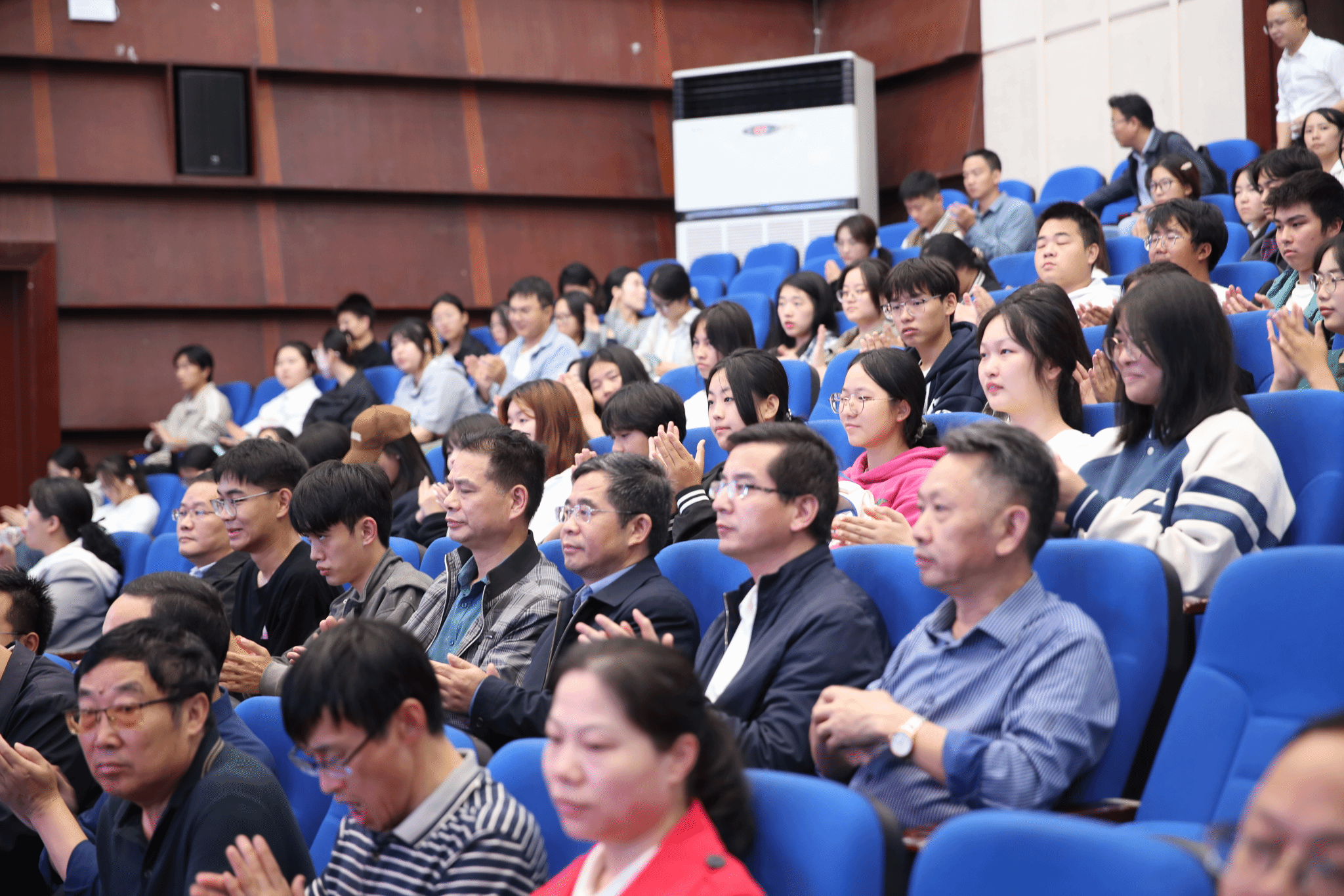 宣讲会高潮迭起,全场师生沉浸在刘槐荫慷慨激昂的宣讲氛围之中。他深情地说:“是什么比生命还珍贵,值得战士们把生死置之度外,奋勇杀敌,英勇献身?那是祖国的尊严和人民的利益,因为它高于一切!”现场,刘槐荫分享了他作为对越自卫反击战指导员的亲身经历,将作战战士们的爱国情怀淋漓尽致的展现出来。“作为一个枪林弹雨中幸存的老兵,我对‘今天的幸福与安宁是以无数生命和鲜血换来的’这句话体会尤为深切。很多战士牺牲时跟在场的大学生一个年纪,他们用青春和生命捍卫了祖国的尊严和人民的利益。这种精神,是我们今天应该继承和发扬的。”刘槐荫情绪激动,声音微微颤抖,在场的师生被他的情感所感染,掌声雷动,经久不息。