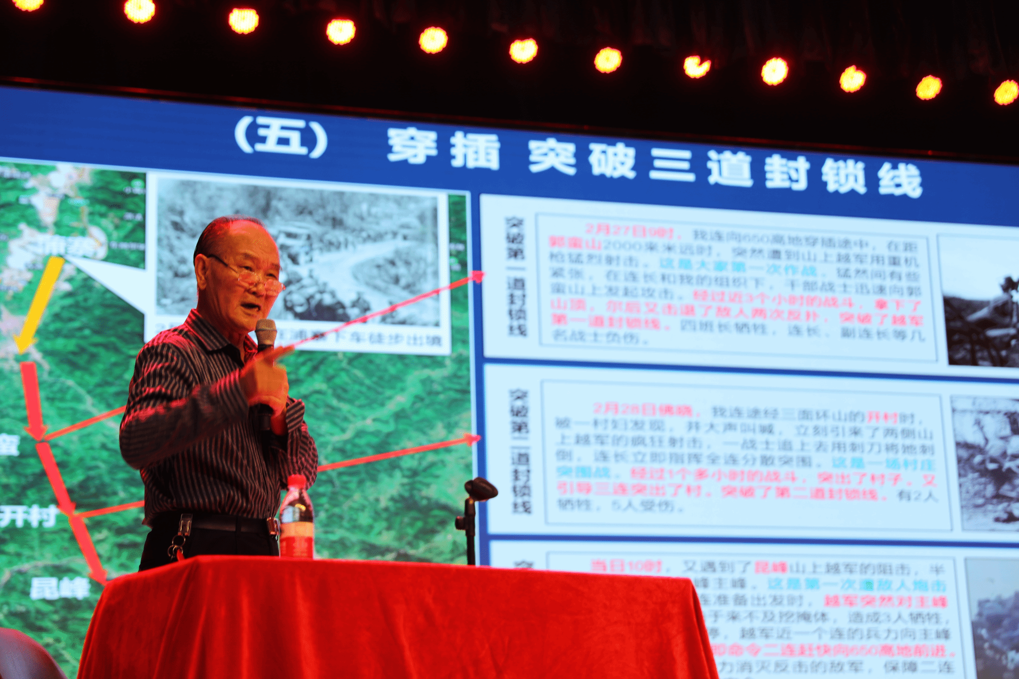 活动第一阶段在我校艺术学院音乐厅举行。原任井冈山大学工学院党委书记、江西省首批老兵宣讲团成员、吉安市关工委报告团团长、井冈山大学关工委“五老”宣讲团成员刘槐荫分享了其关于对越自卫反击战的铭心经历和对爱国情怀的深刻理解。校党委副书记肖宜安,党委常委、宣传部部长肖洪海出席,各学院(部)党政班子主要负责人以及师生代表近200人聆听了宣讲会。