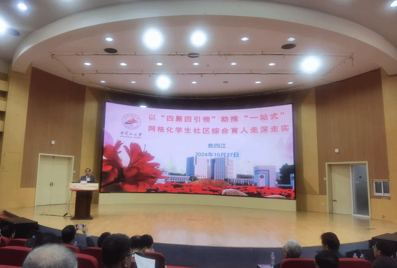 敖四江从汇聚力量,党建引领有招;凝聚共识,思想引领有为;集聚资源,文化引领有效;积聚动能,数智引领有方等四个方面,《以“四聚四引领”助推“一站式”网格化学生社区综合育人走深走实》为题介绍了我校一站式”学生社区建设情况。
