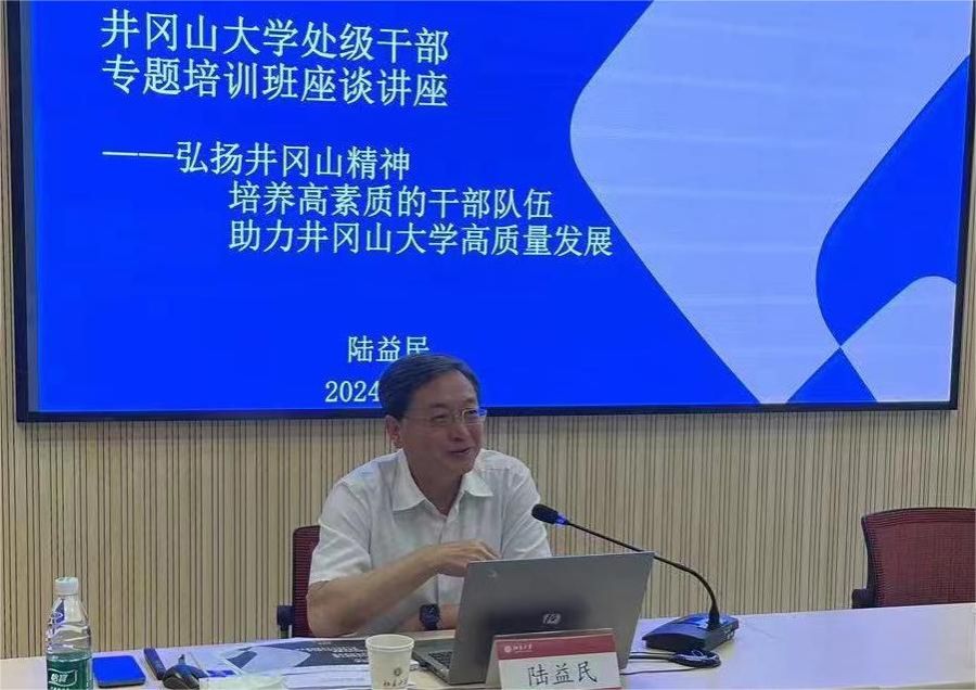 本次培训班除北京大学继续教育学院精心安排的五堂高质量授课以外,学校还特别邀请了多年来一直关心、支持和助力学校建设与发展的老朋友——中国通用技术控股有限公司正高级工程师陆益民老师以《弘扬井冈山精神,培养高素质干部队伍,助力井冈山大学高质量发展》为主题为培训班授课。他结合党的二十届三中全会精神学习感受,围绕“学习习近平总书记诠释井冈山精神、井冈山大学的高质量发展、在新时代锻造干部的素质”三个方面,对我校干部队伍建设和学校发展给予了指导性的建议,并与培训班学员进行了深入的交流,细致回答了井大干部在推动发展过程中遇到的一些困惑与问题。
