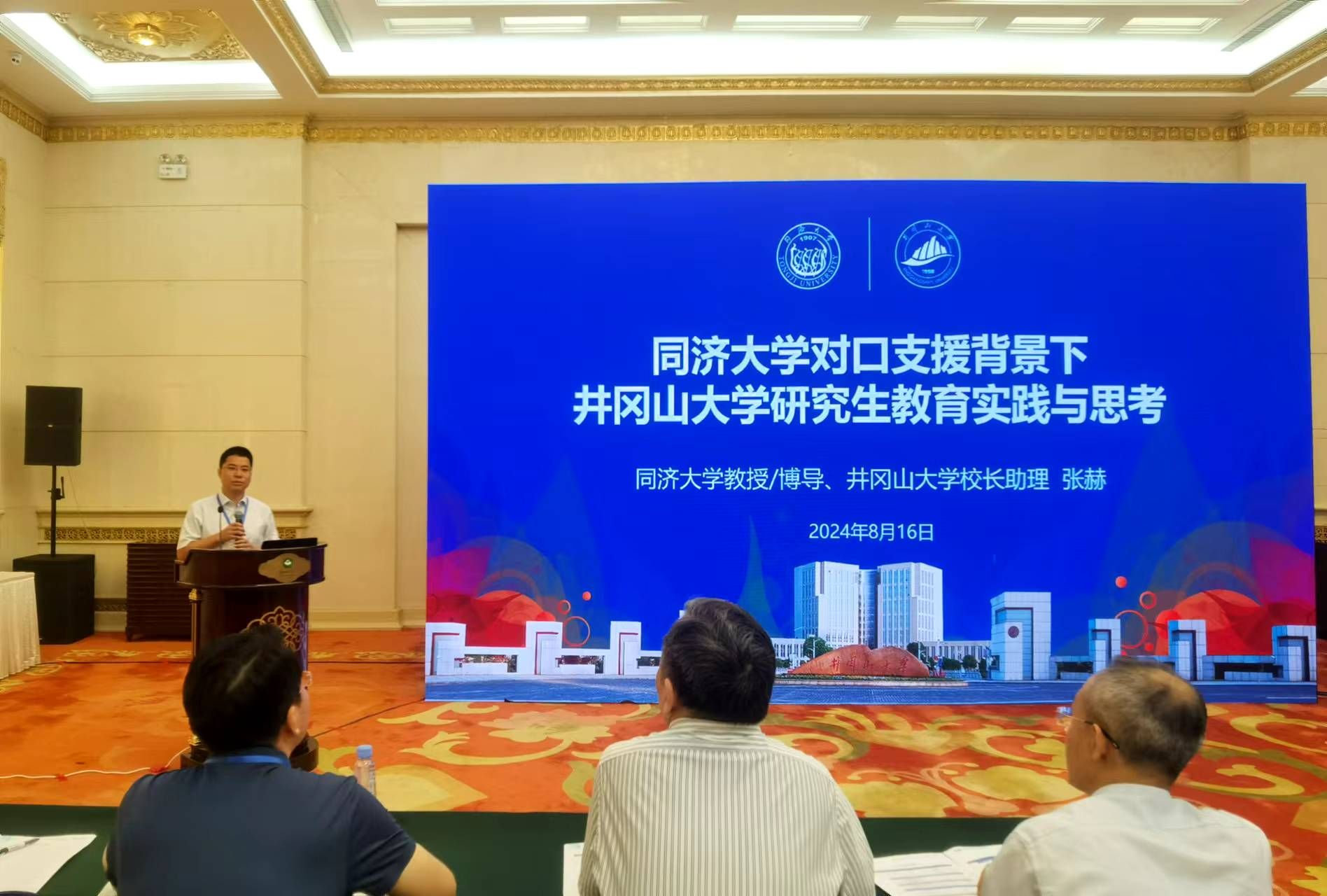 8月16日上午,应中国学位与研究生教育学会人才选拔与评价委员会邀请,校长助理张赫代表学校,在2024年全国研究生招生工作学术研讨及培训会上作《同济大学对口支援背景下井冈山大学研究生教育实践与思考》专题报告。大会由中国学位与研究生教育学会人才选拔与评价委员会主办、中国石油大学(北京)、内蒙古大学承办。教育部高校学生司、教育部教育考试院、教育部学生中心、中国学位与研究生教育学会等部门单位领导出席会议。