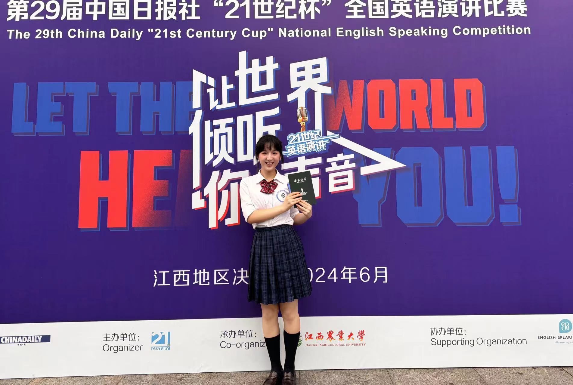 6月22日,第二十九届“21世纪杯”全国英语演讲比赛(江西赛区决赛)在江西农大成功举办。由我校外国语学院杨婷和欧阳璐两位教师指导的人文学院2022级徐佳欢同学在比赛中表现优异,获得江西赛区决赛亚军并顺利晋级全国半决赛。