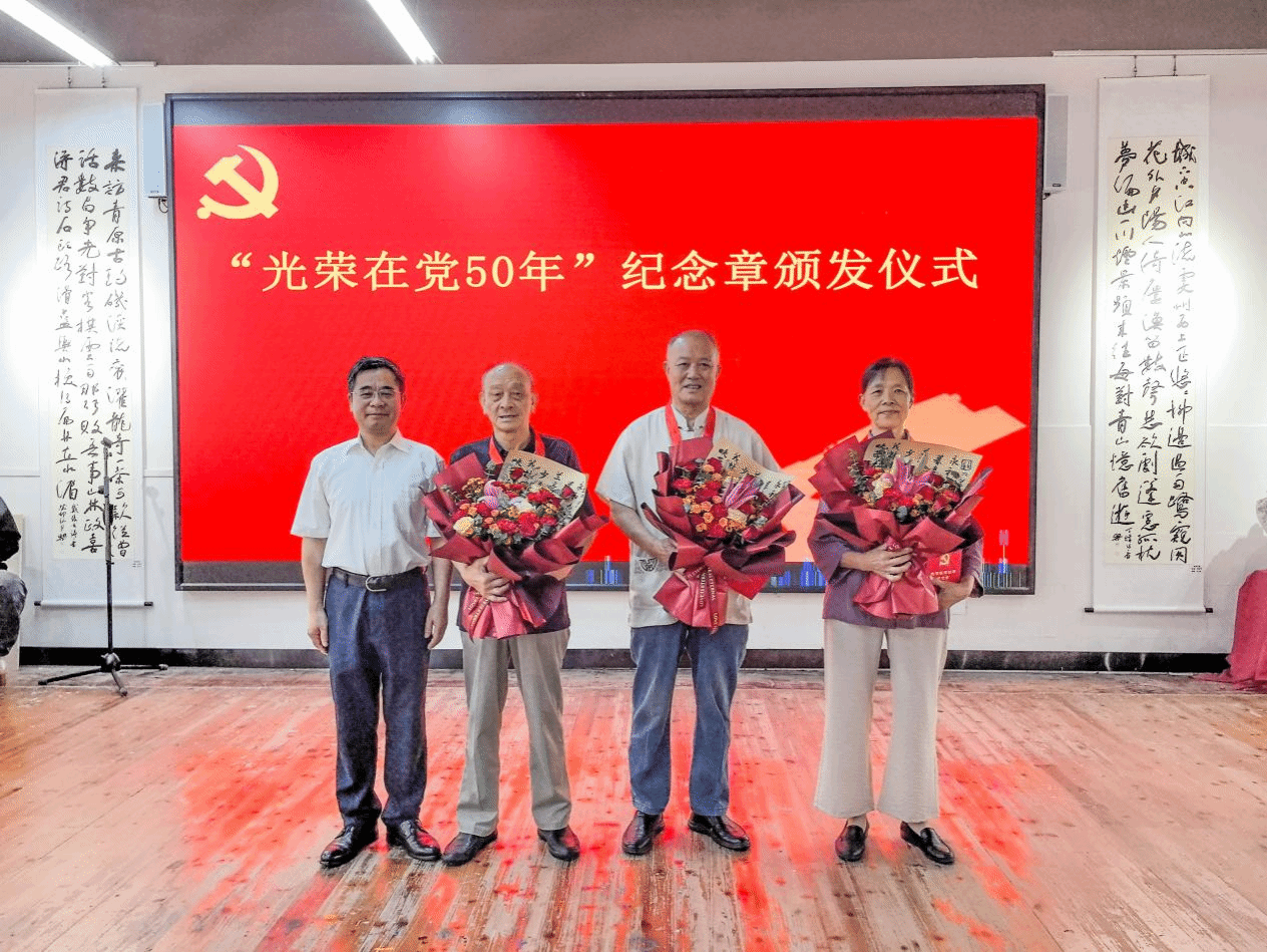 活动中,肖宜安为王素珍、廖义林、廖万民三位老党员颁发“光荣在党50年”纪念章。90岁高龄的郭光镜同志作为学校多年来高速发展的亲历者与见证者,结合自身经历就学校发展变化进行分享。青年学生围站老同志身边,聆听在党50年的光辉岁月。