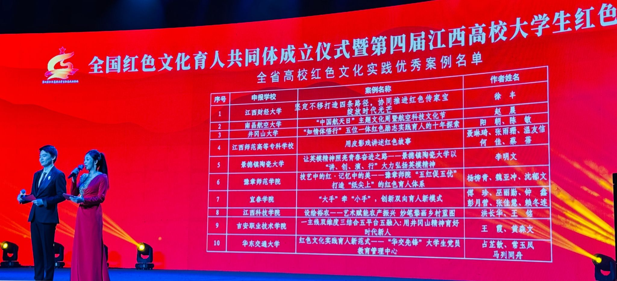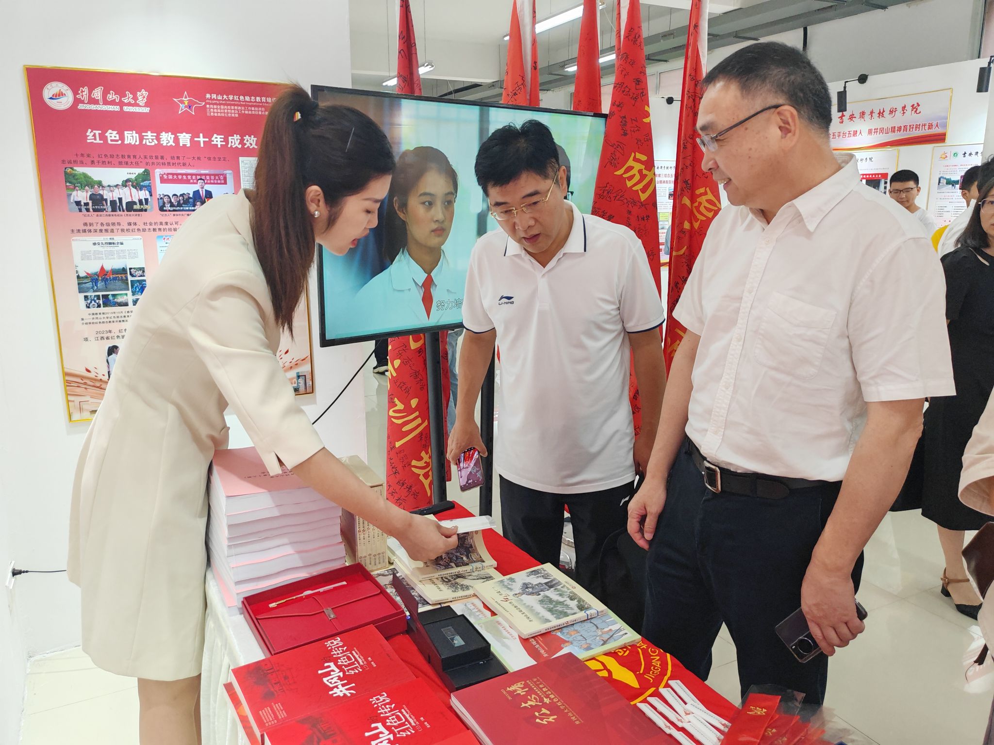 6月28日,由江西省委教育工委、省教育厅主办的全国红色文化育人共同体成立仪式暨第四届江西高校大学生红色文化论坛优秀作品展在江西科技师范大学举行。我校“知情体悟行”五位一体红色励志实践育人的十年探索”获评全省高校2024年红色文化实践“十佳案例”并进行了现场展示,红色励志教育培训班获2023年全省高校“红色班级”创建试点并在大会上通报表彰,江西省委教育工委委员、省教育厅副厅长汪立夏等一行到我校展位参观指导并对我校红色文化育人工作给予充分肯定,省内外兄弟院校驻足我校展位,就红色文化育人工作开展情况与我校进行交流研讨,校党委常委、副校长敖四江参加论坛活动并来到我校展位现场指导。