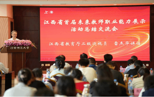 为加强师范生实践能力培养,提升师范生综合教育素质和教学能力,培养一批具有高尚师德、先进教学理念、扎实教学实践能力的优秀教师后备力量,由江西省教育厅主办、江西师范大学承办的江西省2024年度未来卓越教师创新培养研讨会暨“协同提质”首届未来教师职业能力展示活动总结交流会于2024年6月27日至28日在江西师范大学瑶湖校区白鹿会馆举行。参与对象为江西省普通高校汉语言文学、数学与应用数学、英语、物理学、化学、生物科学、思想政治教育、历史学和地理科学等9个师范类获奖学生及学校领导和学科指导老师。总结交流会包括教学设计、多媒体课件制作、即席讲演和模拟上课(板书)四个环节展示,并设置优秀组织奖和个人奖。优秀组织奖授予表现突出的参与高校,个人奖按学科专业共设一等奖2个、二等奖4个、三等奖6个、优胜奖若干。数理学院数学系朱景文博士作为指导老师代表发言。井冈山大学获优秀组织奖,数学与应用数学专业获一等奖1个、思想政治教育获二等奖1个、化学专业获三等奖1个。