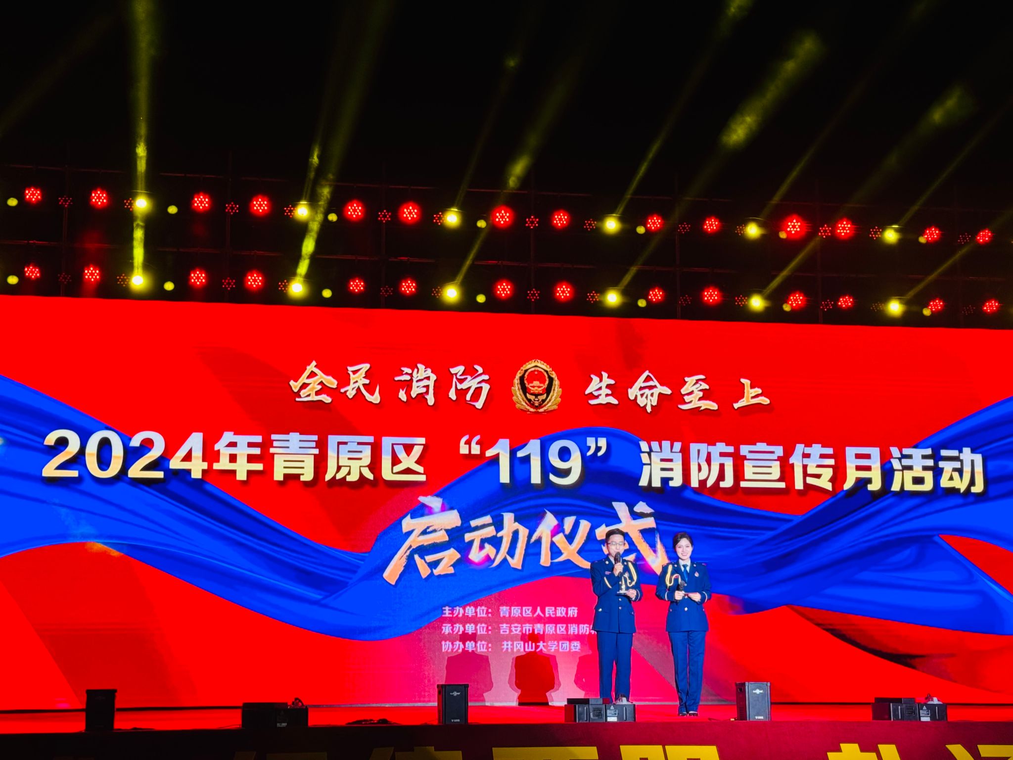 11月7日,由青原区人民政府主办,青原区消防消防救援大队承办、井冈山大学团委协办的2024年青原区“119”消防宣传月活动启动仪式在青原区正气广场顺利举行。吉安军分区司令员刘宗成,副市长、市公安局局长甘文鑫,井冈山大学党委常委、副校长敖四江,区领导匡晓卫、曾昭君等出席仪式并共同启动青原区“119”消防宣传月活动。