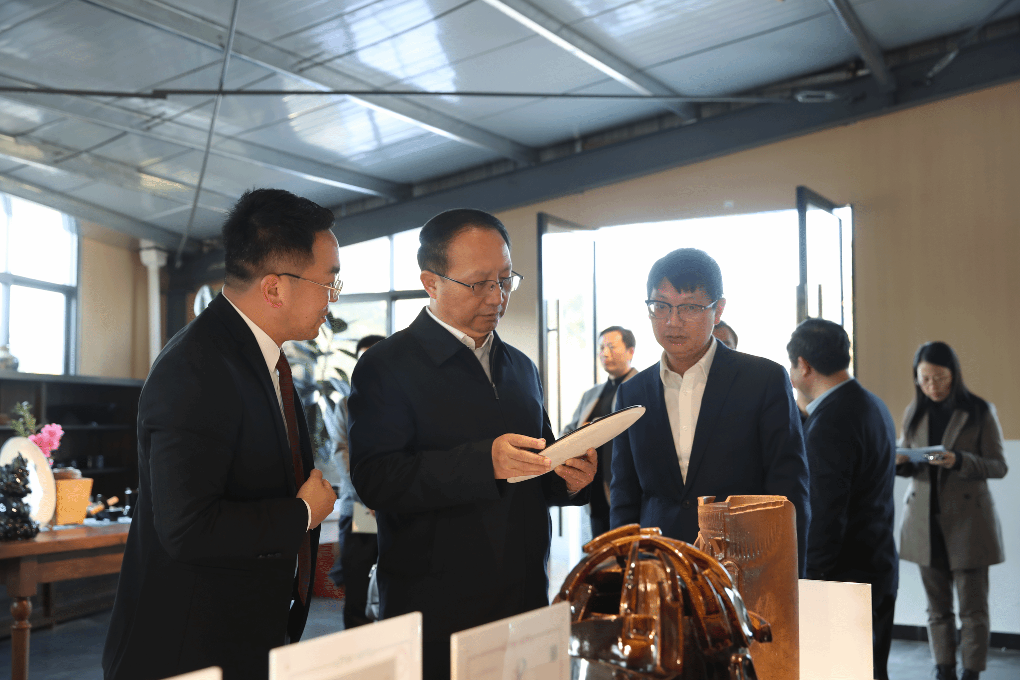 王少玄先后参观了学校教职工之家、陶艺研究中心、庐陵文化研究中心等场所。在教职工之家,王少玄对多次亮相省市展演,受邀央视录制,且在今年“赣超”吉安主场大放异彩的“映山红”合唱团给予充分肯定。并详细了解了我校在服务教职工、建设温馨“职工之家”方面的具体举措与成效,指出学校要继续发挥职工文化阵地的凝聚作用,让更多职工在参与中增强归属感和幸福感。在陶艺研究中心,听取了艺术学院教师关于艺术创作、文化传承与产学研结合的情况介绍。在庐陵文化研究中心,听取了中心在挖掘、整理和创新传播吉安本土文化方面的成果汇报。