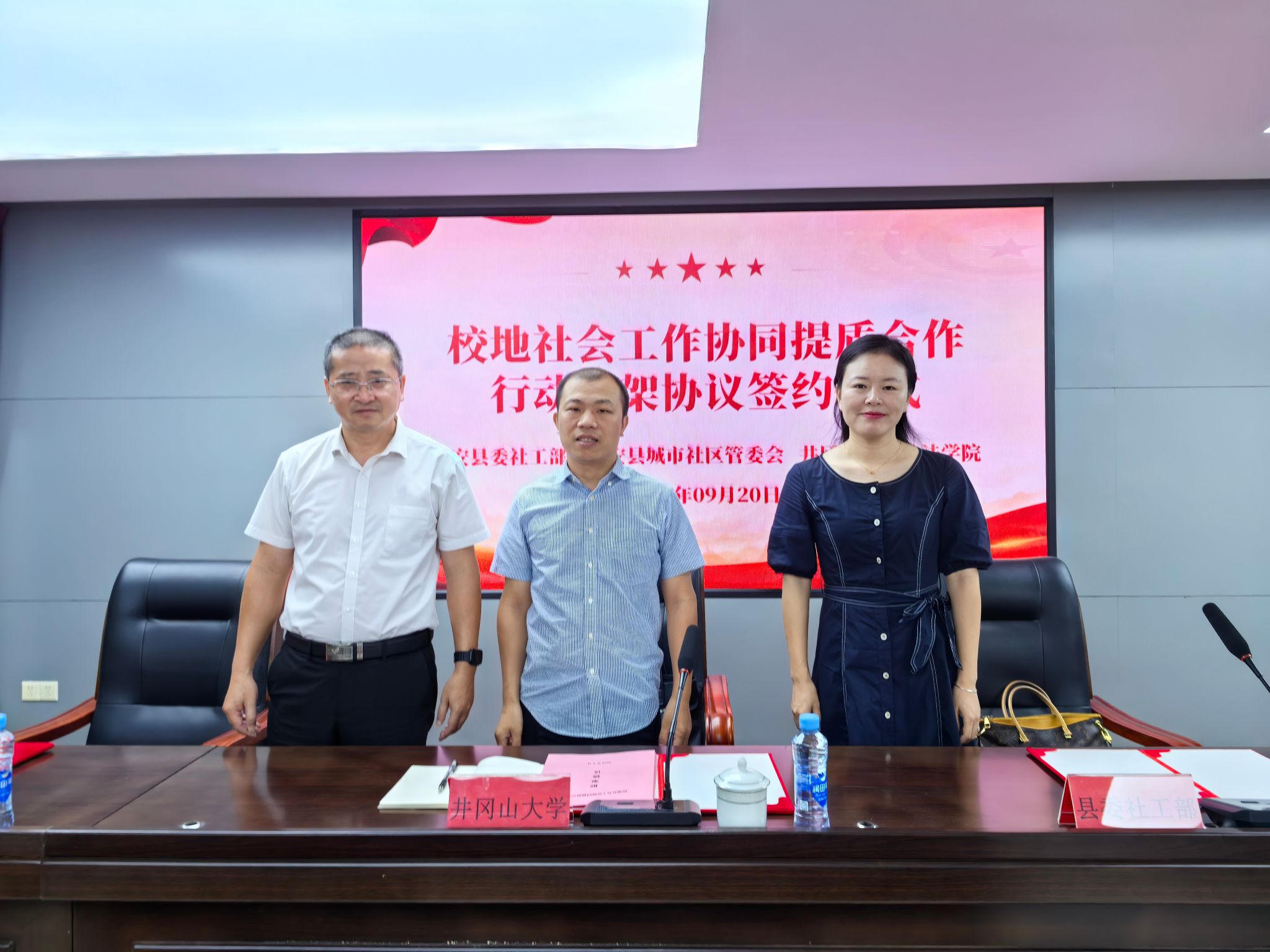 为加强校地合作交流,助推地方社会工作发展,政法学院与中共吉安县委社会工作部、吉安县城市社区管理委员会本着“协同提升、共同发展”原则,于2024年9月20日上午,由政法学院王才章副院长与中共吉安县委社会工作部范梦雨部长、吉安县城市社区管理委员会朱友根书记签订了“校地社会工作协同提质合作行动”框架协议,协议一式三份,主要涉及专业培训、课题研究和成果转化、实习实践基地和学术科研基地建立、定期互动交流四个方面。框架协议为政法学院与吉安县围绕“社会工作”开展合作指明了方向,接下来,政法学院与合作方将聚焦以上方面开展探索,共同推动社会工作及地方社会治理事业提质升级。