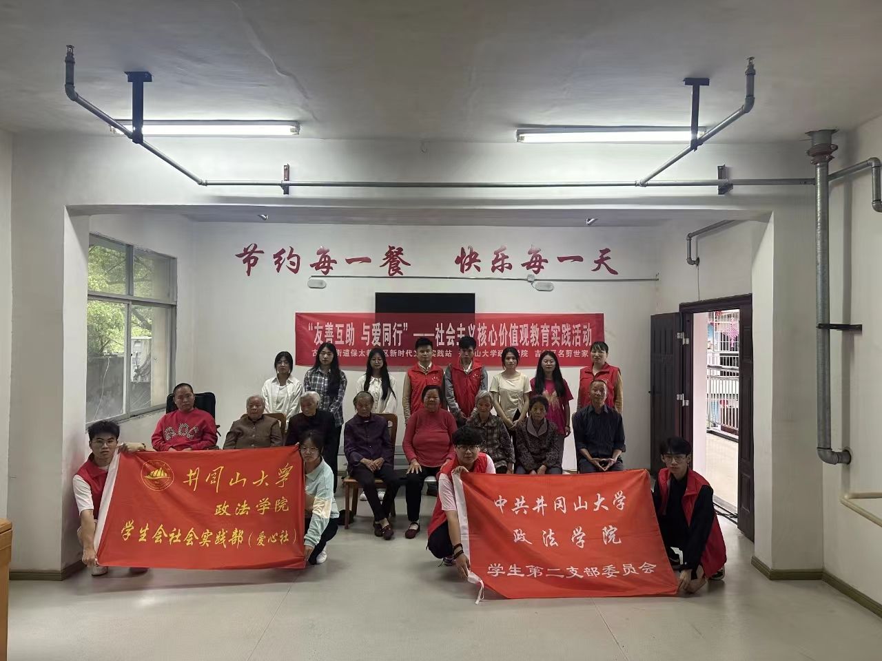 为弘扬中华民族敬老爱老的传统美德,营造全社会关注老年人的良好氛围,给老人们带去欢乐和温暖,4月19日上午9时,政法学院学生会社会实践部(爱心社)、政法学院学生第二党支部成员前往吉州区古南镇街道太平桥养老院开展“青风驱烈日,朝气伴夕阳”主题志愿活动。