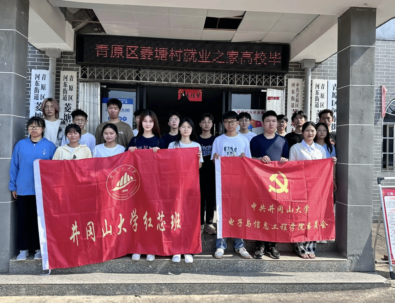 为响应国家号召,促进高校毕业生高质量充分就业,确保青年就业形势总体稳定,强化党建引领,建强基层党组织。5月17日上午,电子与信息工程学院党委与青原区河东街道菱塘村党支部、青原区人社局联合开展“结对联建---就业之家专场招聘会“活动。电子与信息工程学院毕业班党员和红芯班学员二十余人、菱塘村部分党员、群众和村干部共同参与活动。