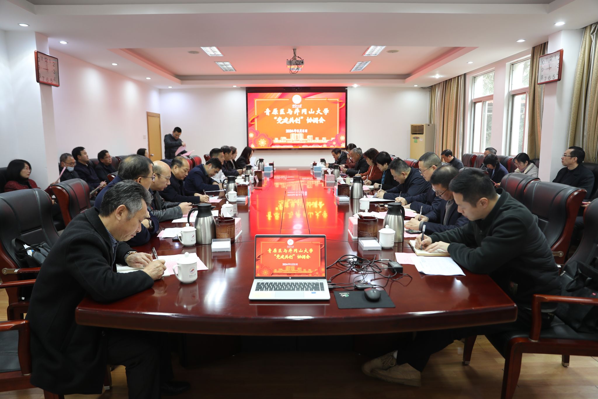 3月5日上午,井冈山大学与青原区“党建共创”协调会在我校召开。校党委副书记肖宜安出席并讲话,党委常委、组织部部长梁景宏主持协调会,青原区党委常委、组织部长彭敏出席并讲话,我校相关职能部门、学院负责人及青原区有关部门单位负责人参加会议。