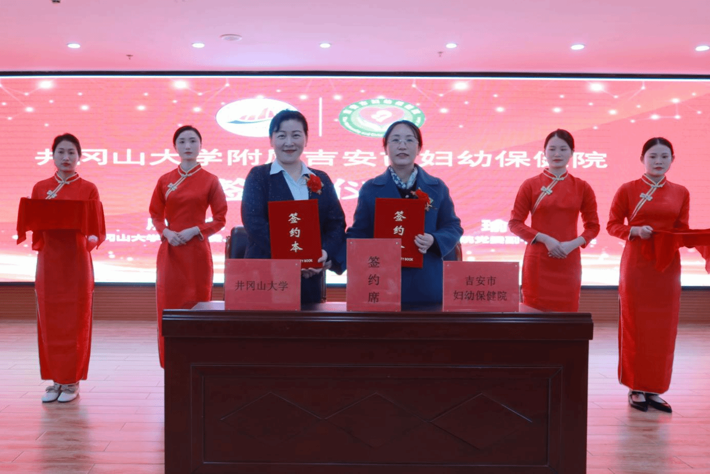 3月13日上午,井冈山大学附属吉安市妇幼保健院揭牌签约仪式在吉安市妇幼保健院举行,吉安市人民政府副市长周密,井冈山大学党委副书记肖宜安共同为井冈山大学附属吉安市妇幼保健院揭牌。井冈山大学党委常委、副校长廖岚与吉安市妇幼保健院院长邱瑜分别代表双方签订合作协议。廖岚、吉安市卫健委主任李发芽、吉安市妇幼保健院院长邱瑜分别致辞。