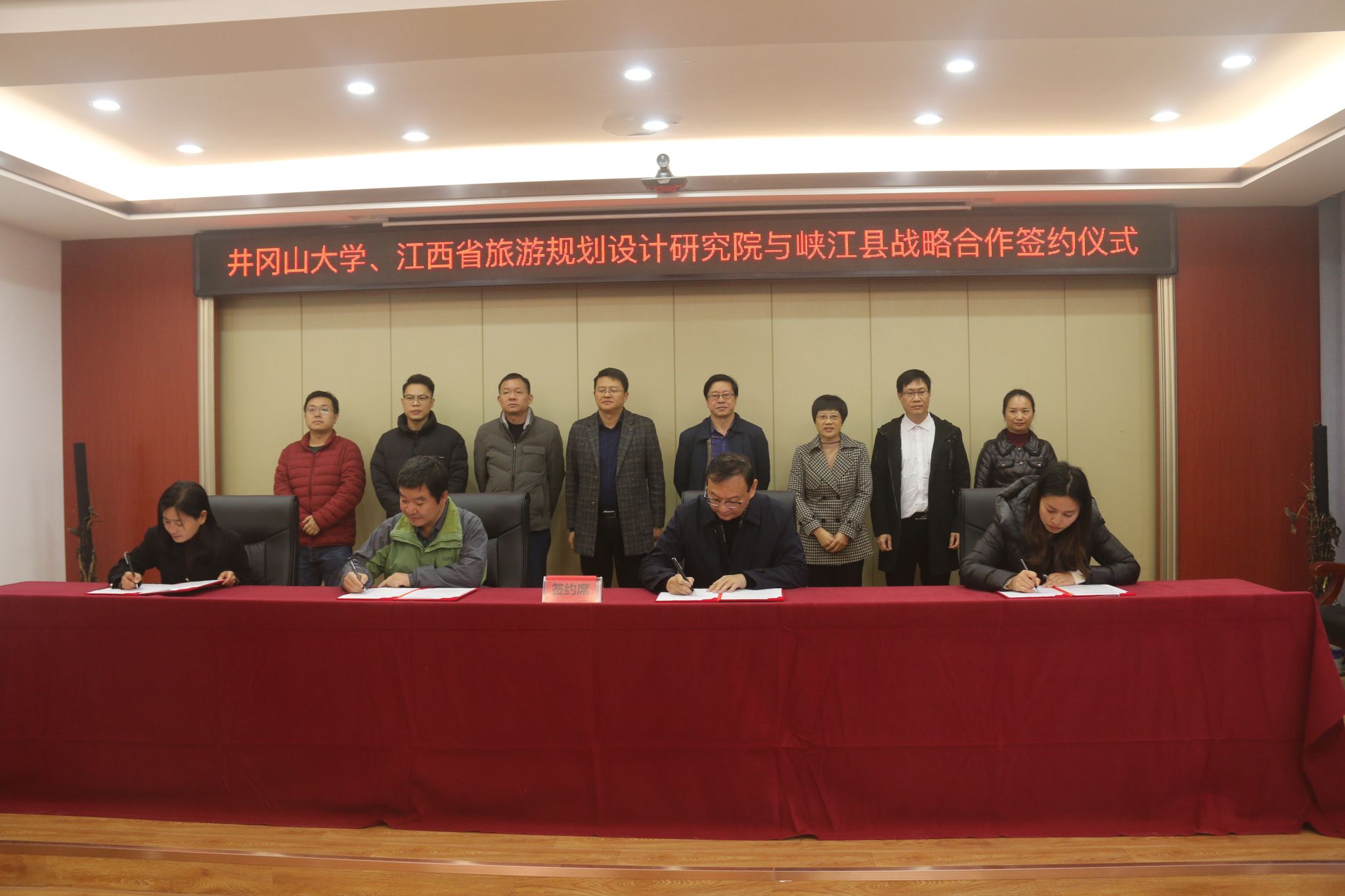 仪式上,王军民、邹晓青分别代表井冈山大学商学院与峡江县签订战略合作协议。
