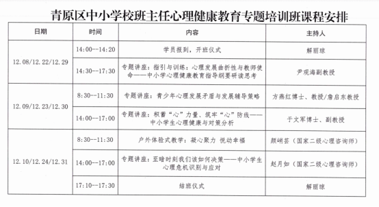近日,按照井冈山大学关于《井冈山大学与县域基础教育协同提质行动方案》(井大字[2023]68号)文件精神,教育学院严格按照“一县一案”“一校一策”的原则,落实“一院一校”对口帮扶工作机制,发挥学院在心理健康教育方面的人才优势,助力对口县域中小学校学生心理健康工作,学院主动作为积极与青原区教体局对接,为不断提高青原区广大教师特别是班主任的心理素质,构建和皆校园,策应市教体局《关于加强中小学心理健康教师队伍建设的通知》(吉教体办字[2023] 104号)相关要求,联合举办全区中小学班主任心理健康教育专题培训,培训时间为2023年12月8日----12月31日,实行分批分期进行,初中、高中班主任一期: 12月 8--10号;小学班主任两期,第一期: 12月22--24号,第二期: 12月29--31号。每期培训2.5天,计20学时。教育学院尹观海副教授、于文军博士、副教授领衔担任培训班重要师资。