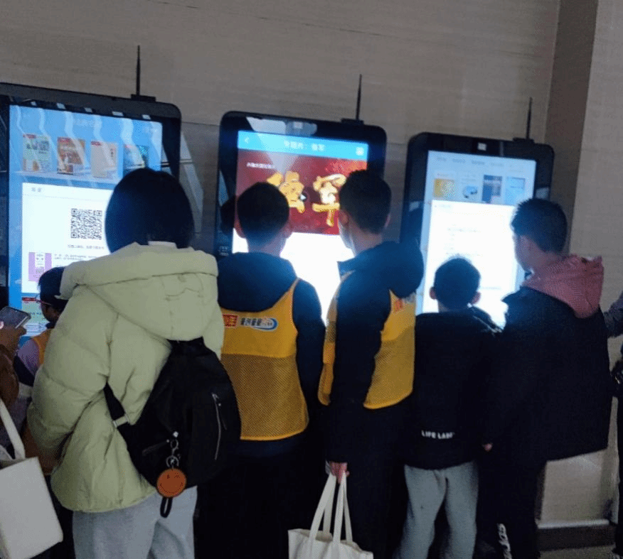 图书馆的曾老师首先带领小记者们到图书馆内进行参观,向大家介绍了图书馆布局和设备设施。走到自助借阅一体机跟前,曾老师向小记者们认真讲解如何查找文献、借阅图书、使用电脑查询资料等知识内容,并手把手教授小记者们进行实际操作体验。
