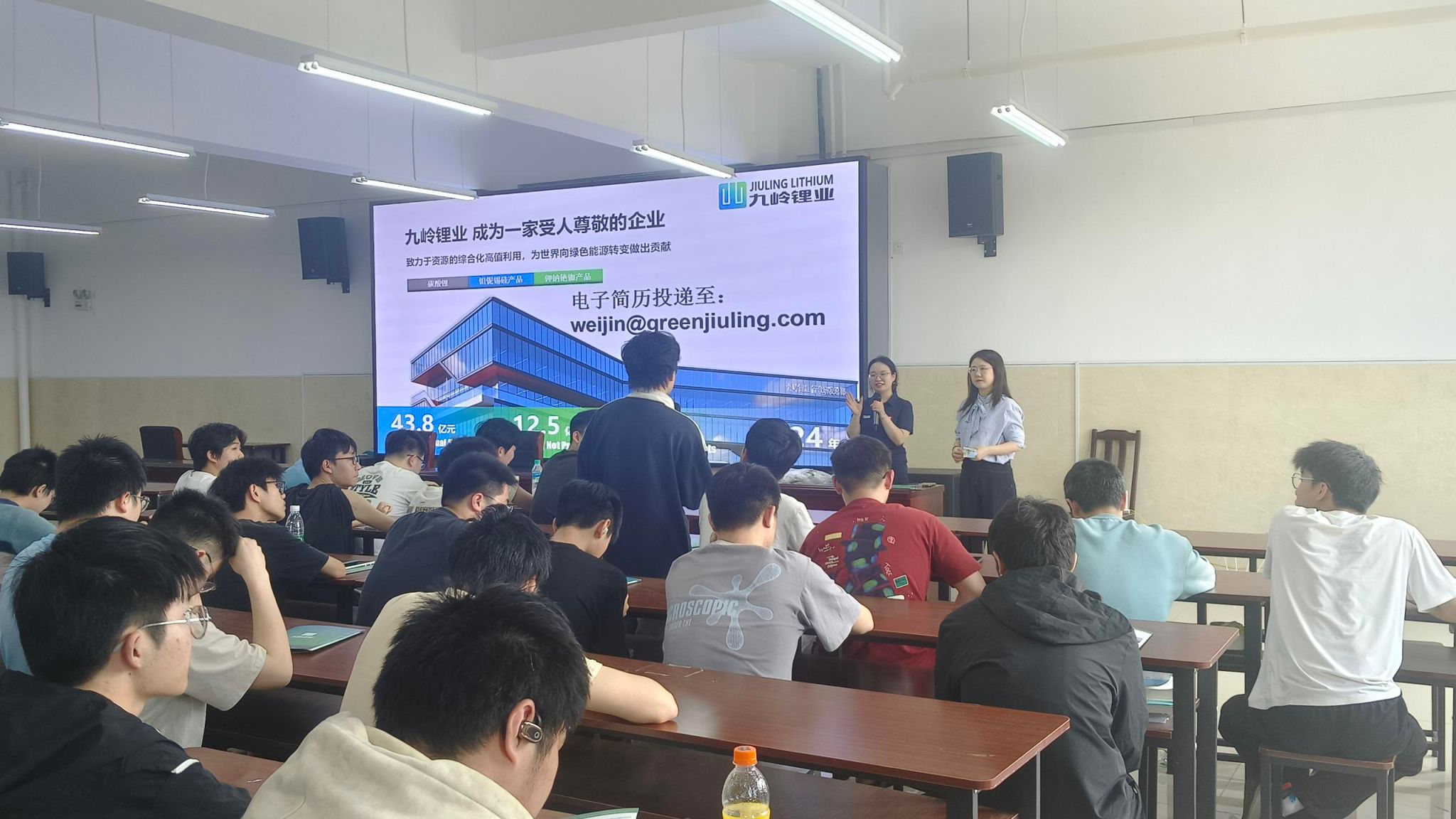 宣讲会上,陈文通代表学院对九岭锂业一行的到来表示热烈欢迎,他详细介绍了学院在学科建设、人才培养、科研平台等方面的优势,强调学院始终坚持“立足江西、服务产业”的办学定位,与九岭锂业共建的微专业班是校企“双主体”育人的重要实践载体。自2023年双方签署战略合作协议以来,微专业班已培养输送了一批高素质技术人才,毕业生在企业研发、生产等岗位上表现突出,实现了“入学即入职、毕业即就业”的良性循环。