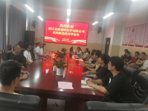 洪国麟介绍了浙江龙游道明光学有限公司的发展情况、公司产品应用领域及优势,给出了试用期及转正后在同行业有竞争力的工资待遇,直白的表示对井大学子高看一眼,厚爱一分。热情欢迎学院毕业生的加入,并对同学们提出的问题进行了耐心解答。