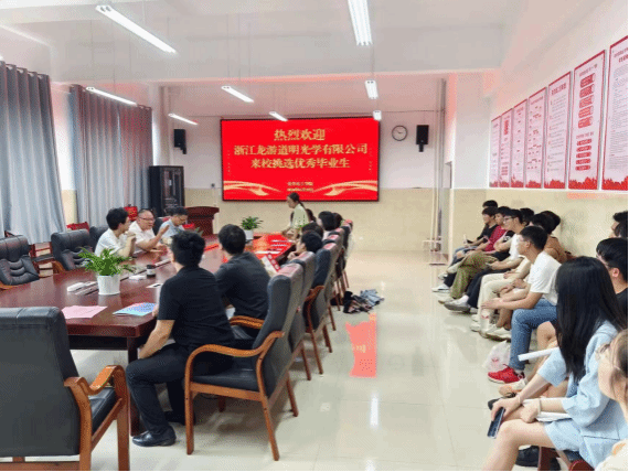 为推进毕业生与用人单位的精准供需对接,提升人岗匹配精准度和实效性,拓宽毕业生高质量就业渠道,6月19日下午,浙江龙游道明光学有限公司副总监洪国麟、人事经理倪晨辉一行应邀到化学化工学院举行人才招聘宣讲会。学院院长陈文通、副院长刘诚、就业干事王先平和20级在校毕业生30余人参加了宣讲会。