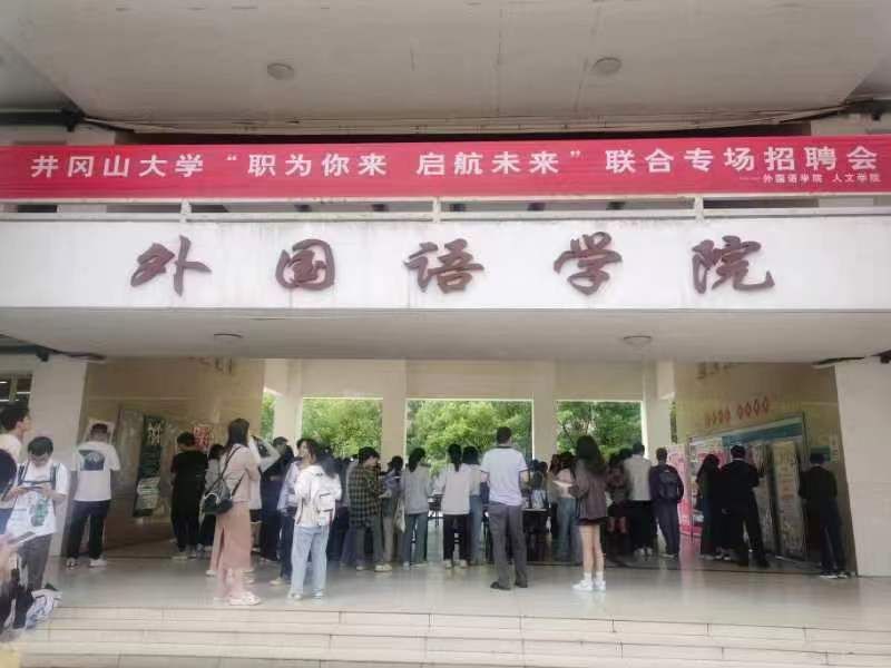 4月18日,由井冈山大学招生就业指导处主办,外国语学院、人文学院协办的 “职为你来,启航未来”学院联合专场招聘会在9栋教学楼大厅成功举办。