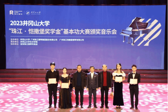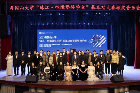 由井冈山大学、广州珠江钢琴集团有限公司、广州珠江恺撒堡钢琴有限公司主办,井冈山大学艺术学院承办,吉安珠江钢琴专卖店协办的2023井冈山大学“珠江·恺撒堡奖学金”基本功大赛颁奖音乐会,于12月29日上午9时在井冈山大学音乐厅圆满落幕!