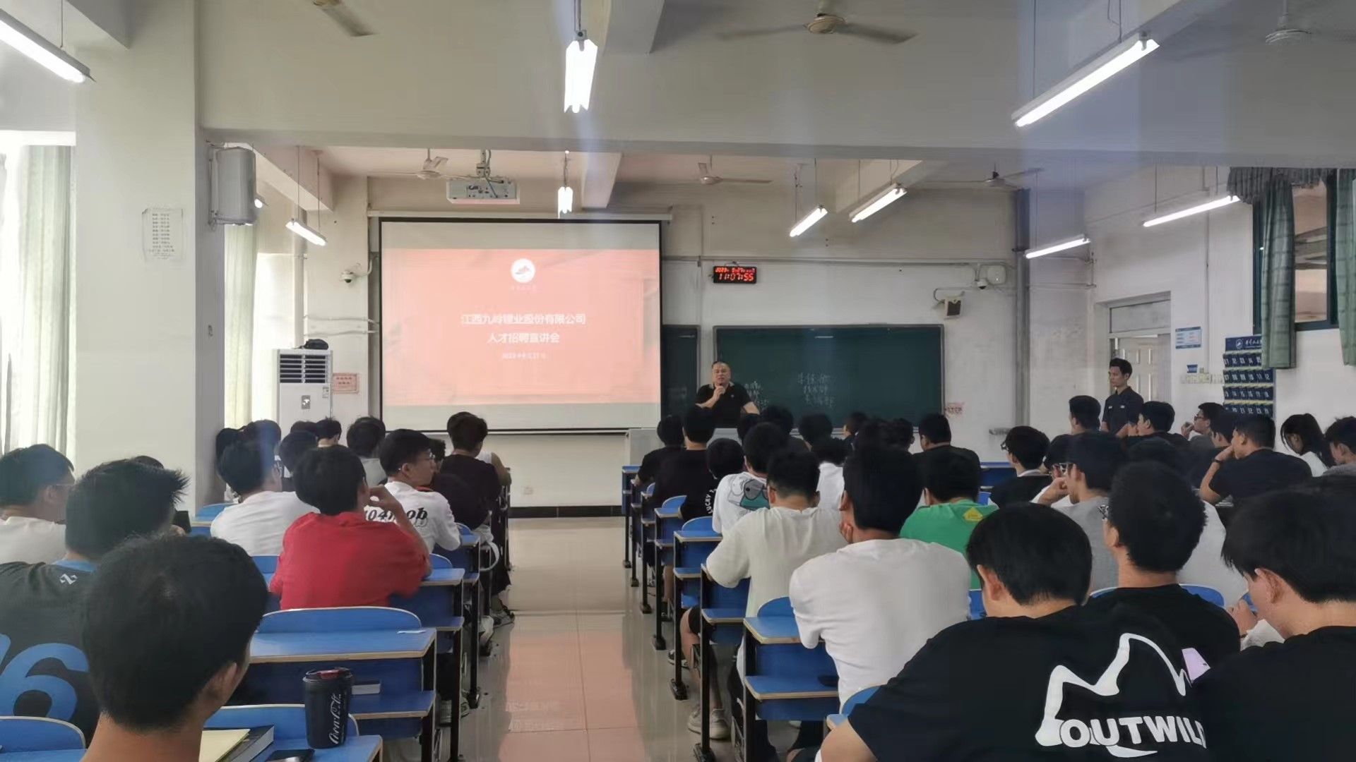 9月27日,江西九岭锂业股份有限公司研发部总监严常青一行来到化学化工学院举行人才招聘宣讲会,宣讲会后严常青为井冈山大学新材料现代产业学院九岭锂业专业班作招生宣讲。会议由院长陈文通主持,部分班主任和学生共计150余人参加了会议。