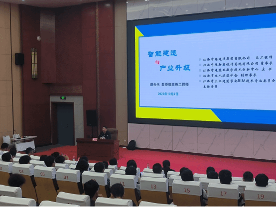 2023年10月9日下午,建筑工程学院第十四届“同济学术周”系列学术报告的重头戏之一,江西中煤建设集团有限公司副总经理、总工程师、享受国务院政府特殊津贴专家谭光伟教授级高级工程师应邀到井冈山大学为该院众师生带来一场以“智能建造与产业升级”为题的学术讲座。建筑工程学院陈京平书记、罗春泳院长、学院骨干青年教师、土木工程专业学生等共二百余人聆听了讲座。本次讲座由建筑工程学院副院长刘良林博士主持。