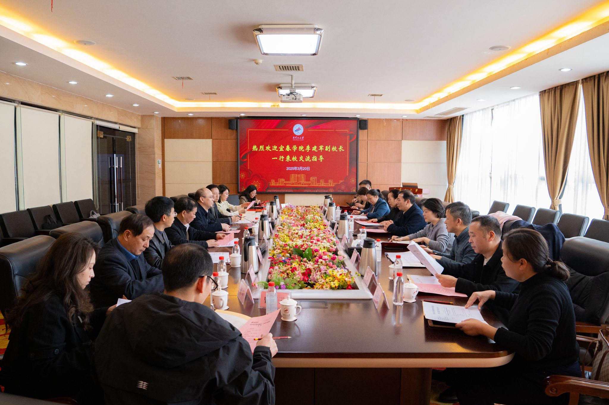 3月20日,宜春学院党委委员、副校长李建军一行来我校,就本科教育教学审核评估工作进行深入交流座谈。校党委副书记、校长罗旭彪,校党委副书记肖宜安,校党委常委、副校长冷明会见李建军一行。校党委常委、副校长黄族豪出席座谈会并讲话。宜春学院党委宣传部、党政办、人事处、学工处、招生就业处、教务处、教学质量管理与评估中心和实验室管理中心以及我校相关职能部门负责人参加了会议。