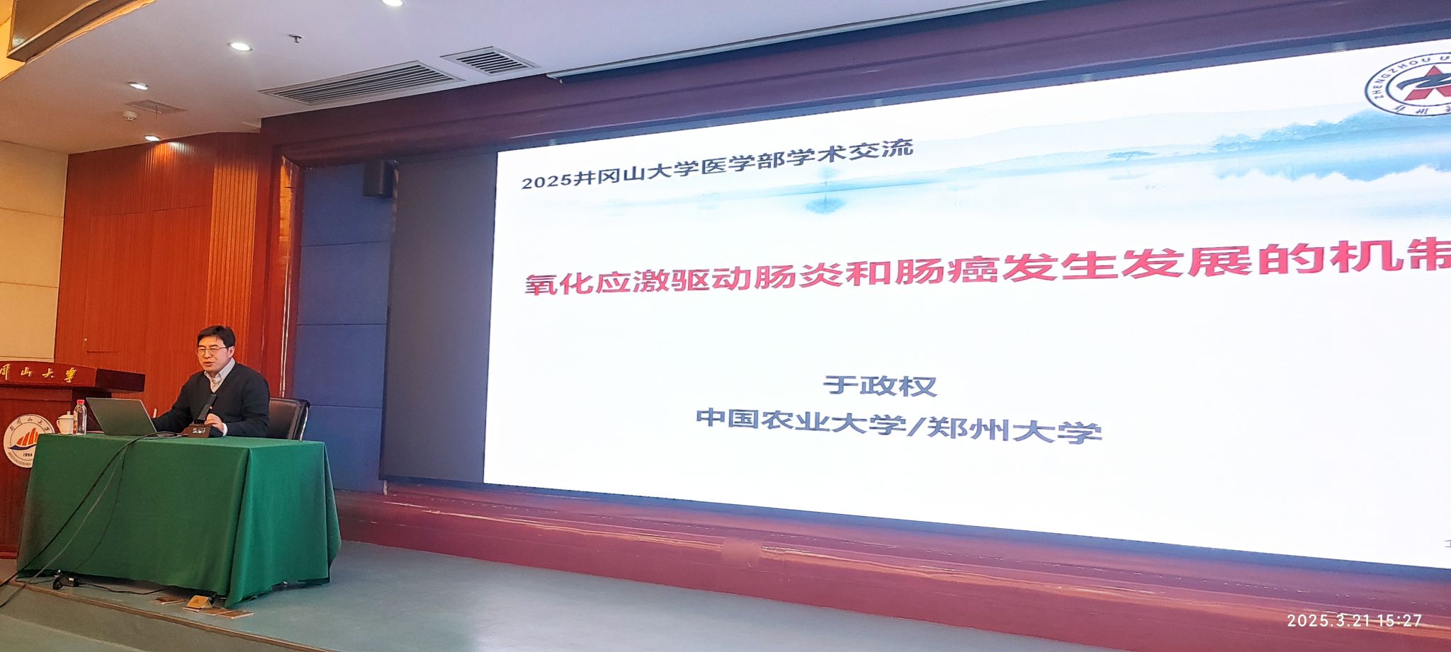 于政权教授带来了“氧化应激驱动肠炎和肠癌发生发展的机制”的主题分享。他从独特的研究视角出发,对肠道稳态与疾病之间的关联进行了深度解读,系统阐述了肠道稳态在疾病发生、发展过程中的重要作用,引发了在场师生的广泛思考与热烈讨论。