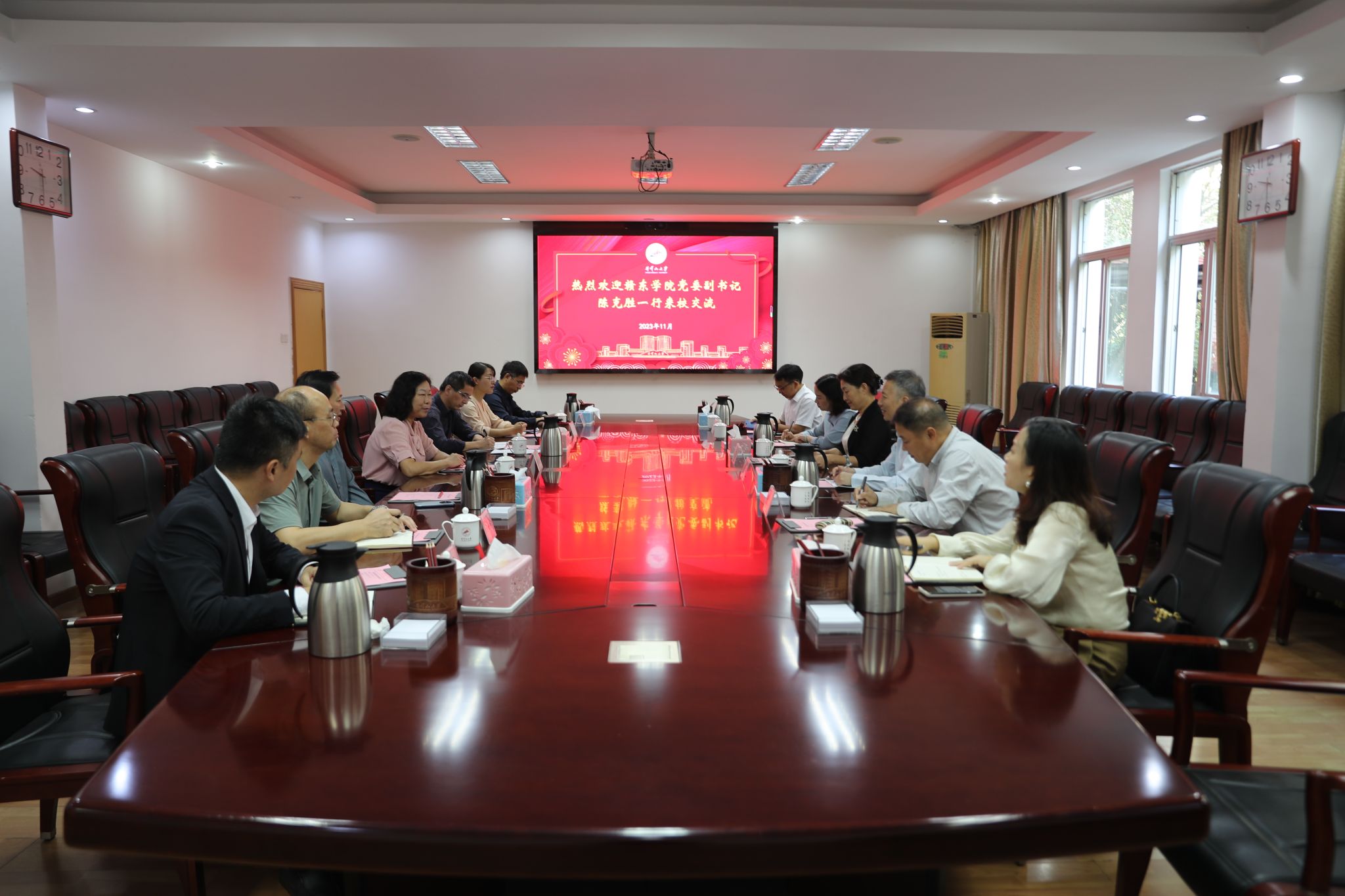 11月3日,赣东学院党委副书记陈克胜,率该校有关部门负责人一行来校访问交流。校党委书记胡春晓出席了座谈交流会,党委副书记、校长罗旭彪会见了陈克胜一行,党委常委、宣传部长肖洪海出席,相关对口部门和学院负责人参加了座谈会。