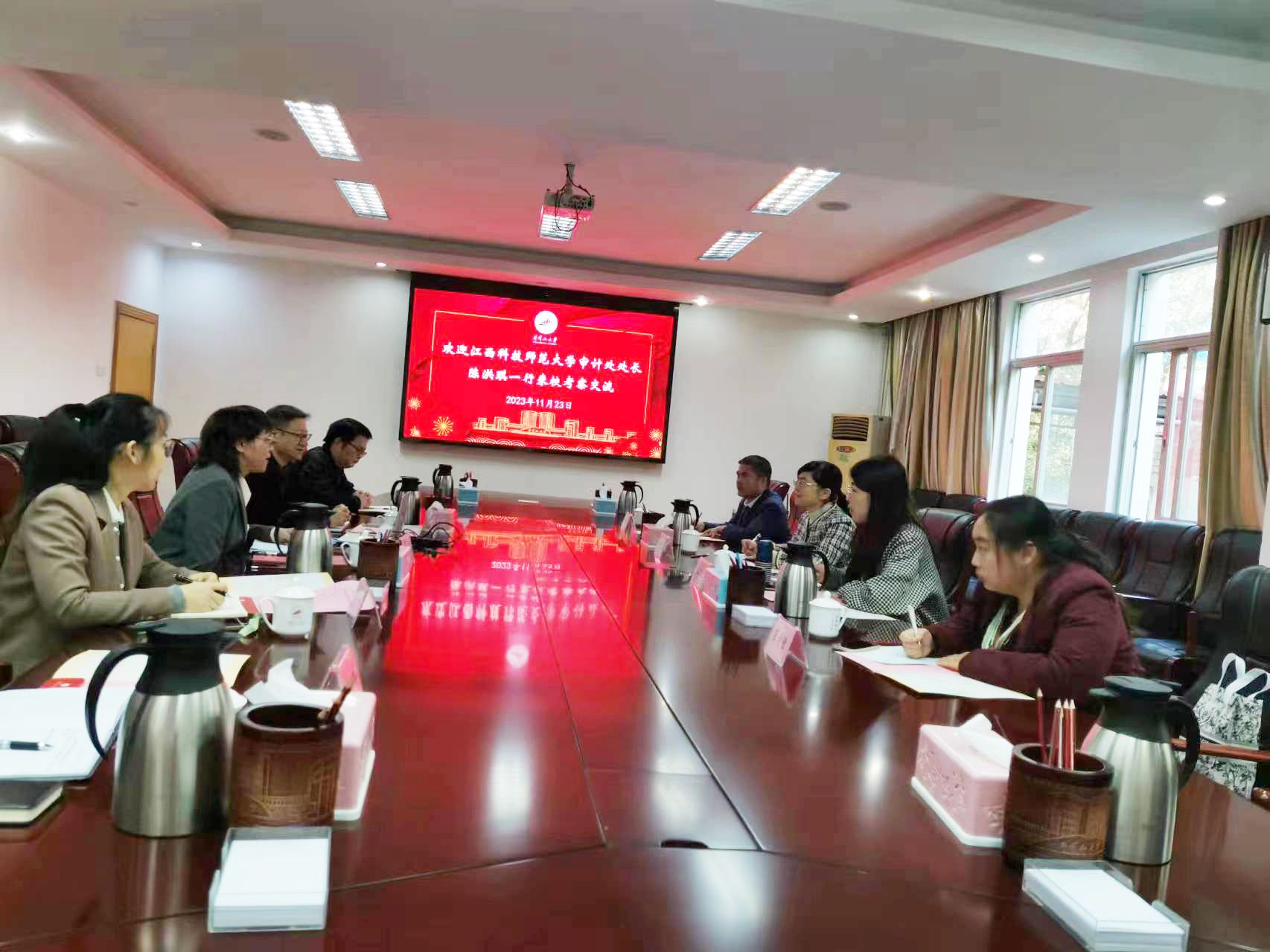 2023年11月23日上午,江西科技师范大学审计处处长陈洪琪一行来到我校审计处进行考察交流。审计处全体人员参加了交流活动。
