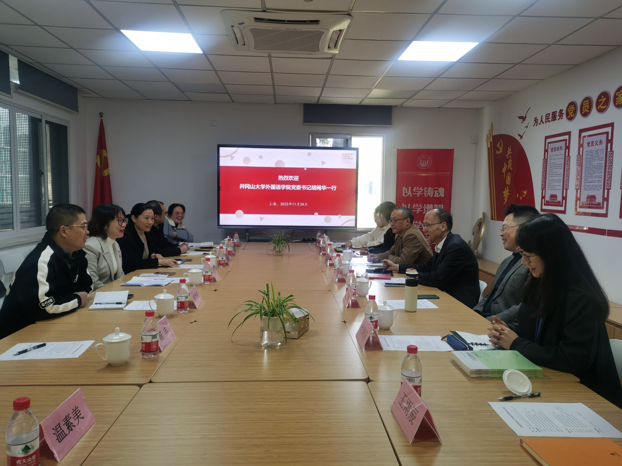 11月24日,外国语学院党委书记胡闽华率班子成员、相关教师赴同济大学外国语学院开展党团建设、学科专业建设、人才培养、创业就业等工作调研,同济大学外国语学院党委书记郑春荣,副院长沈骑等领导老师参加了座谈会。