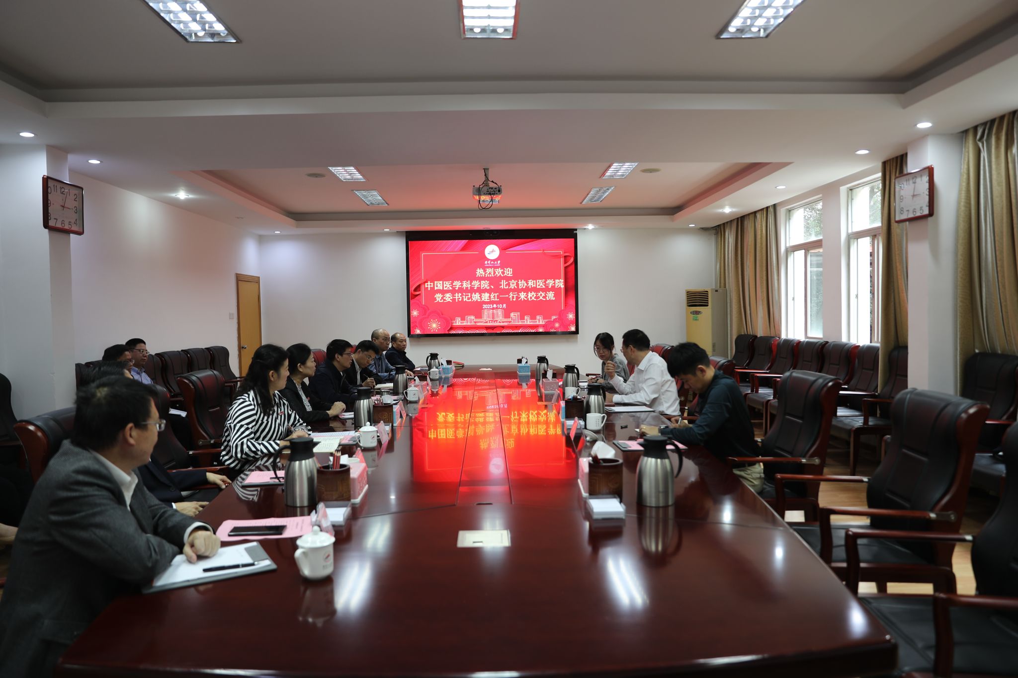 10月11日,中国医学科学院、北京协和医院党委书记、副校长姚建红一行来校调研。校党委书记胡春晓出席座谈会并讲话,党委副书记、校长罗旭彪主持座谈会,校党委常委、副校长廖岚及相关部门负责人参加座谈会。
