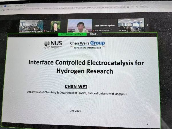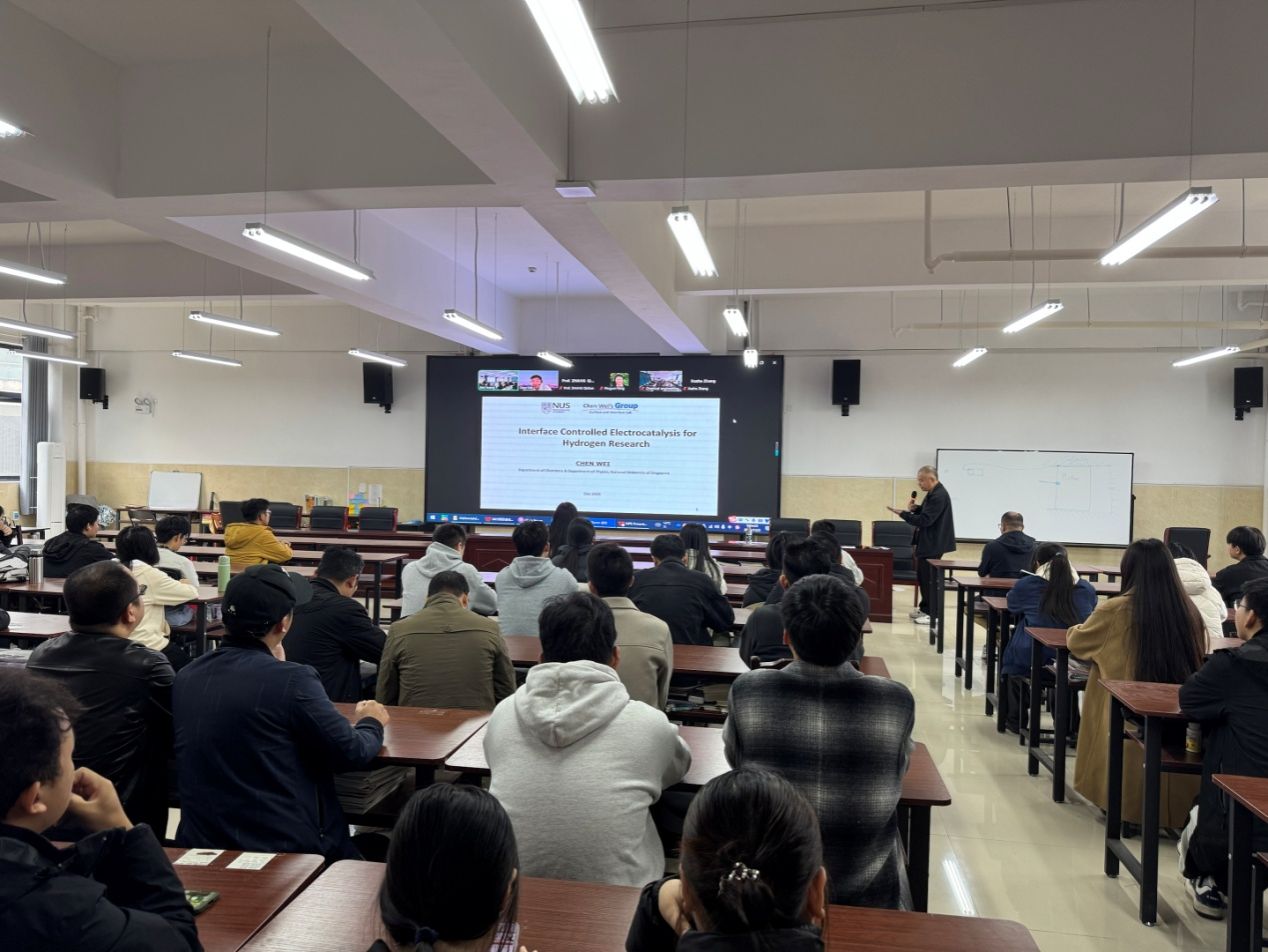 首先,新加坡国立大学Wei Chen教授作了题为“Interface Controlled Electrocatalysis”的报告。他在报告中介绍了氢能源是满足未来全球能源需求的绿色可持续能源,当前主流的制氢方式(甲烷蒸汽重整)依赖化石资源且高二氧化碳排放,存在明显局限;指出了电催化析氢反应(HER)是一种安全、可规模化、低成本且环保的制氢路径,具有广阔应用前景;报告分享了课题组在纳米粒子表面控制催化还原制备氨气的成果:1)通过电子金属 - 载体相互作用精准调控单原子铂催化剂的氧化态,显著提升其在酸性或碱性析氢反应中的催化活性;2)构建二维共价键富勒烯聚合物网络(PNW-C60)负载铂纳米颗粒催化剂,该催化剂兼具高活性与稳定性,可用于绿氨制氢的氨氧化反应。