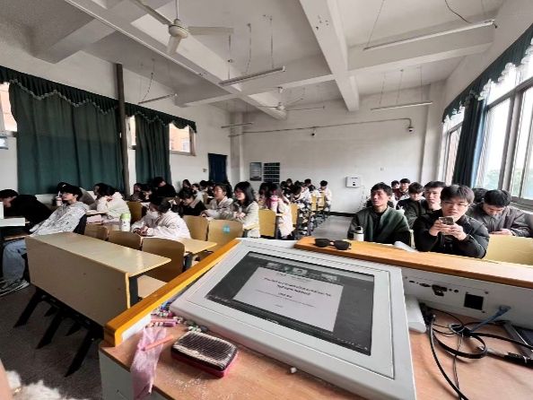 Wei Chen教授作线上报告(左),22化工3班参与聆听陈教授报告(右)