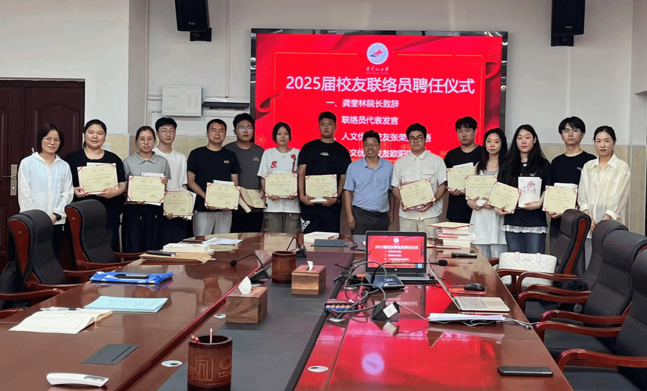 为加强校友联络,凝聚校友力量,促进学院发展,6月3日下午,人文学院在会议室举行2025届校友联络员聘任仪式。人文学院院长龚奎林教授出席并致辞,新聘任校友联络员代表发言,优秀校友代表张荣昌、欧阳国线上参会并发表寄语。辅导员陈玉萍老师参加仪式,仪式由院长助理罗志春老师主持。