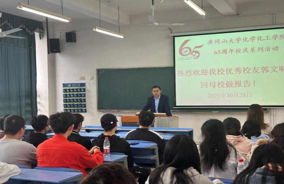 为庆祝井冈山大学建校65周年,10月28日上午,化学化工学院优秀校友郭文啸为化学教育专业师生做了题为“我的幸福历程”的学术报告,报告由化学化工学院应用化学研究所副所长易绣光主持。