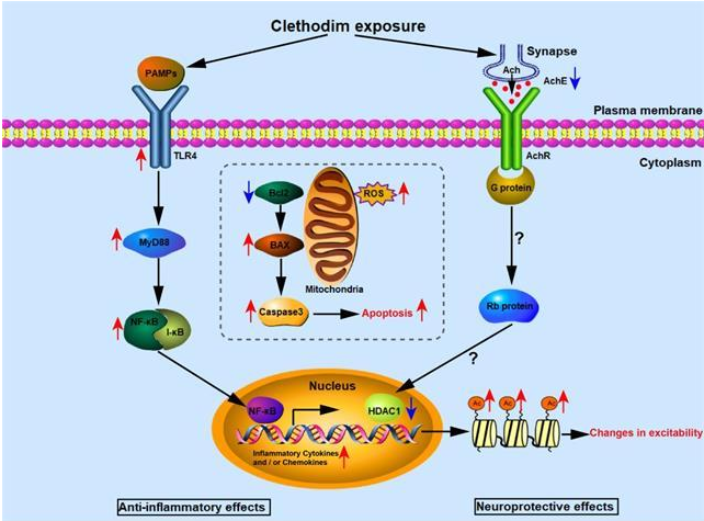 烯草酮是我国农业上广泛使用的除草剂,然而其对水生生物的潜在负面影响仍不清楚。本研究从斑马鱼早期胚胎发育、免疫毒性、细胞凋亡和运动行为等方面展开研究,有助于阐明相关农药对水生生物免疫毒性的分子机制。该项工作得到了国家自然科学基金项目(No.81660087和81560109)的资助。