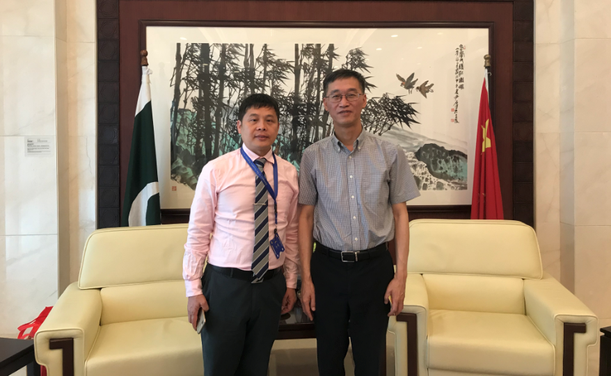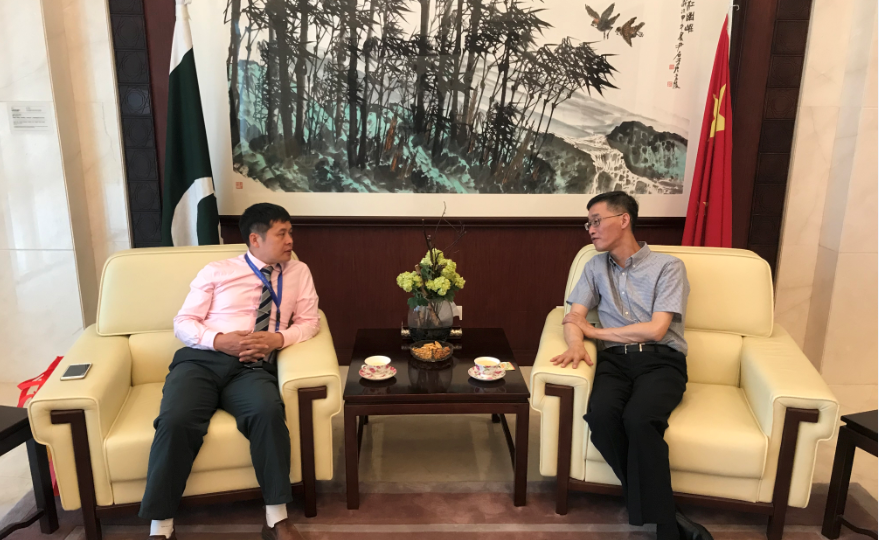 2018年6月2日巴基斯坦时间上午10点,中国驻巴基斯坦大使馆姚敬大使在大使馆亲切接见浩博教育集团董事长周浩波先生。周浩波董事长向姚大使汇报了自2015年开始浩博教育集团沿着国家“一带一路”的政策率先在巴基斯坦伊斯兰堡投资举办中国梦语言国际学校的情况和今后的目标,集团目前在其他两个大城市卡拉奇和拉哈尔设有分校,与中国在巴基斯坦投资的沙西瓦尔电厂和胡布电厂合作开展汉语和英语培训,与拉哈尔当地的ZICAS学校进行了战略合作,共同推进汉语教学和进行两国文化交流,姚敬大使对浩博教育集团作为民间教育机构能够克服困难,砥砺前行,在“一带一路”国家促进汉语教育和文化交流给予了充的肯定并表示大力支持。