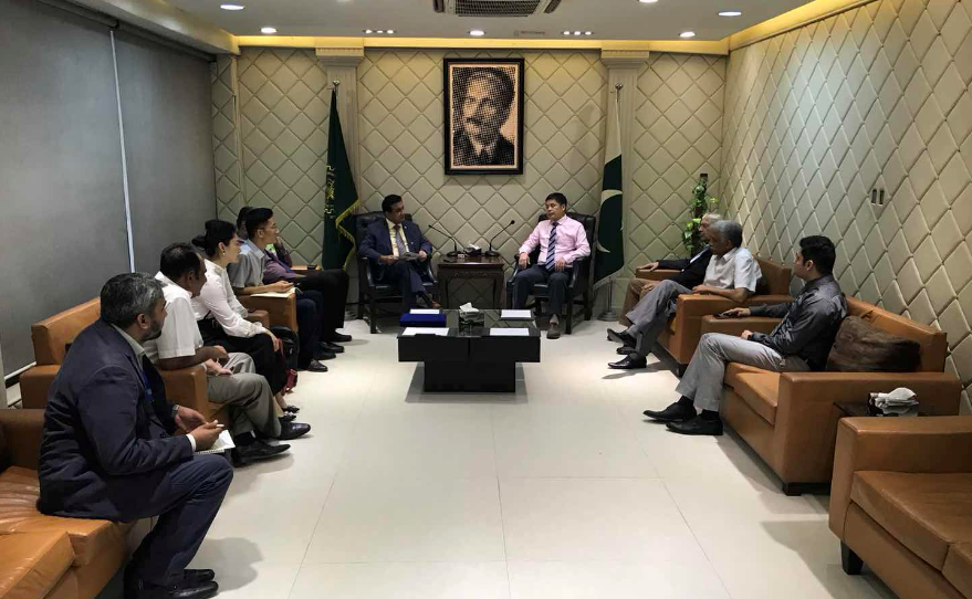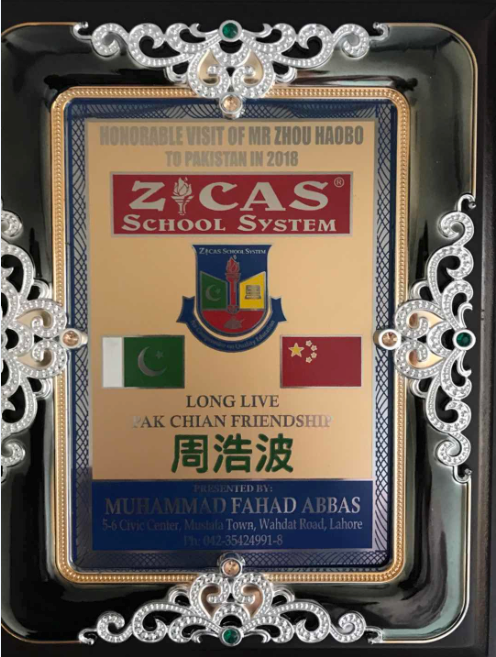 2018年6月5日上午,浩博教育集团周浩波董事长在拉哈尔合作机构ZICAS学校FAHAD董事长的陪同下考察访问了当地政府工商联,工商联主席和政府各界领导参加了会谈,周浩波董事长介绍了集团在巴基斯坦投资办学并服务当地企业的情况,合作方FAHAD董事长介绍了双方合作办学的情况和以后发展方向,得到了当地与会领导和代表的赞赏并建议在中资企业和在中国开展乌尔都语的教学和培训。政府官方电视台全程进行了直播和新闻报道。