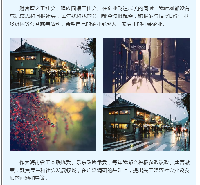 作者现为海南省工商联执委、乐东政协常委、海南金富达实业有限公司董事长、乐东市绿国园林工程有限公司董事长。