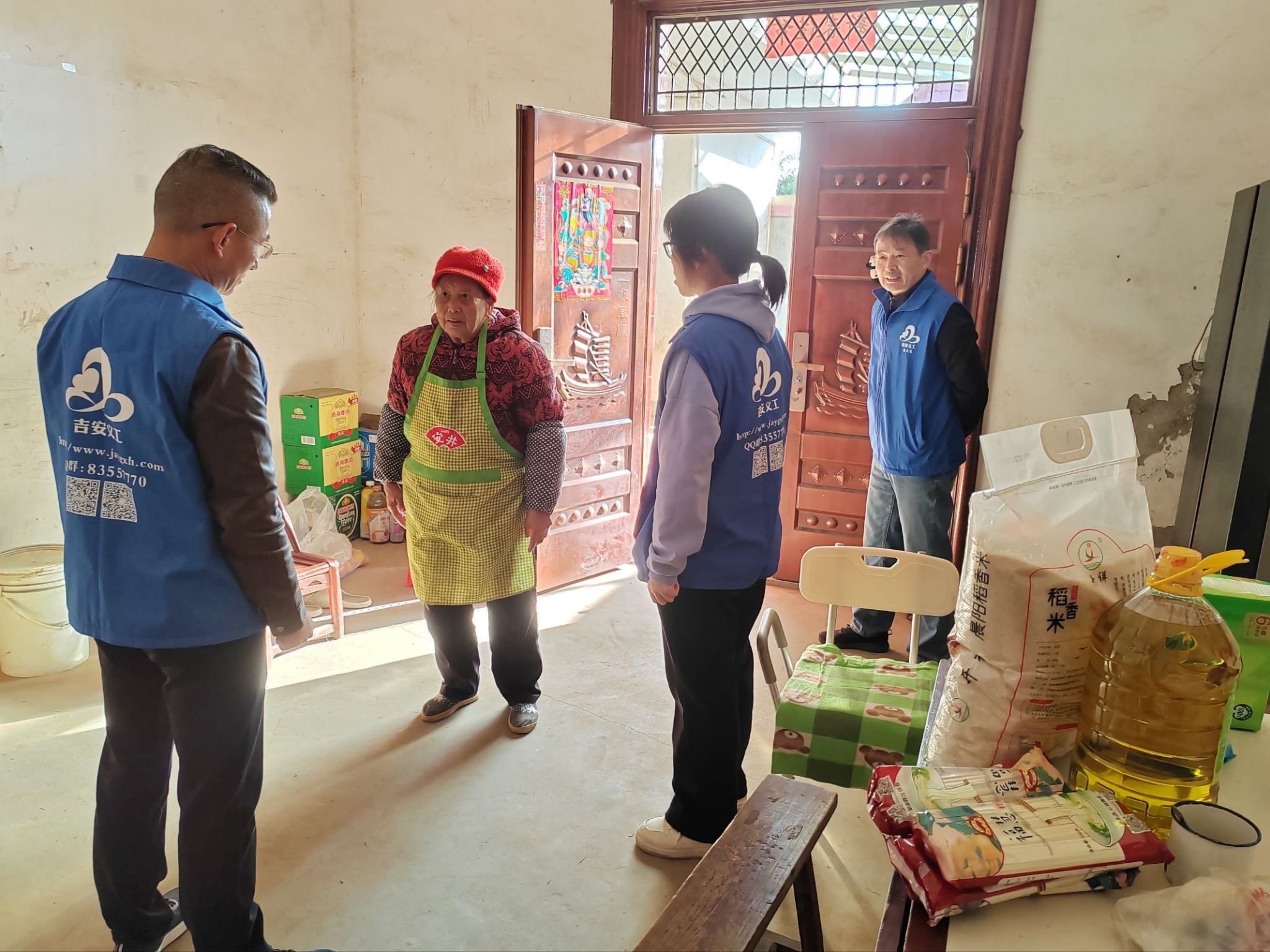 11月义仓的爱心物资,通过多个志愿者小组送达吉安城乡各地。校友服务社同学的任务,是携带统一分装的义仓物资,从市中心广场出发,为吉州区曲濑镇当地贫困户送上米、面、油等生活必需品,确保这份来自社会大家庭的温暖,能够精准抵达曲濑镇最需要帮助的贫困户家庭手中,并在走访中传递了持续的社会关怀。