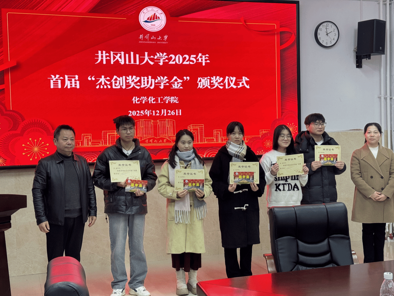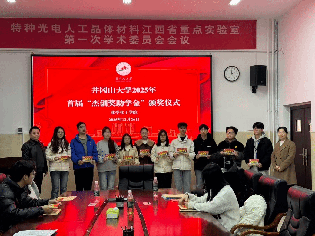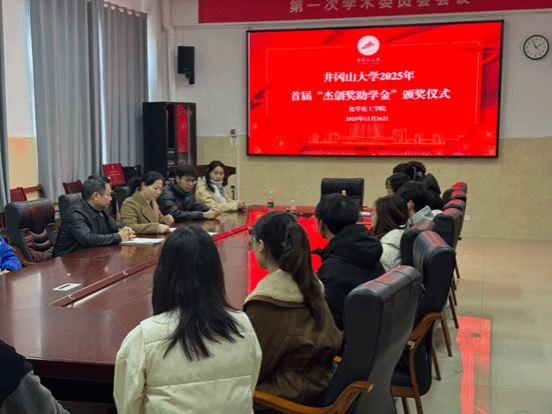 12月26日,化学化工学院首届“杰创奖助学金”颁奖仪式在学院楼26-324隆重举行。仪式由学院党委副书记张华主持,学院党委书记康云峰出席并讲话,获奖及受助学生代表参加。