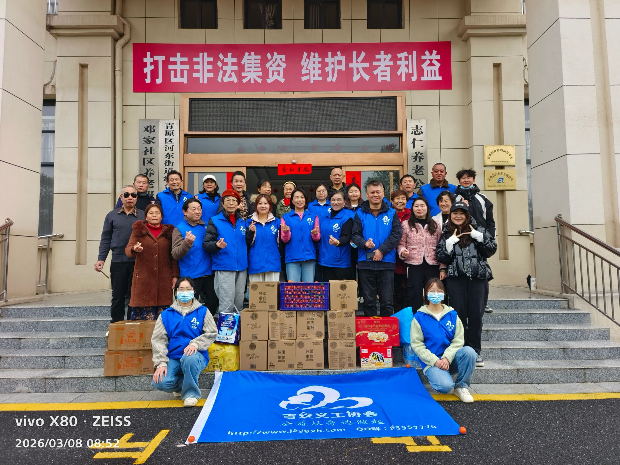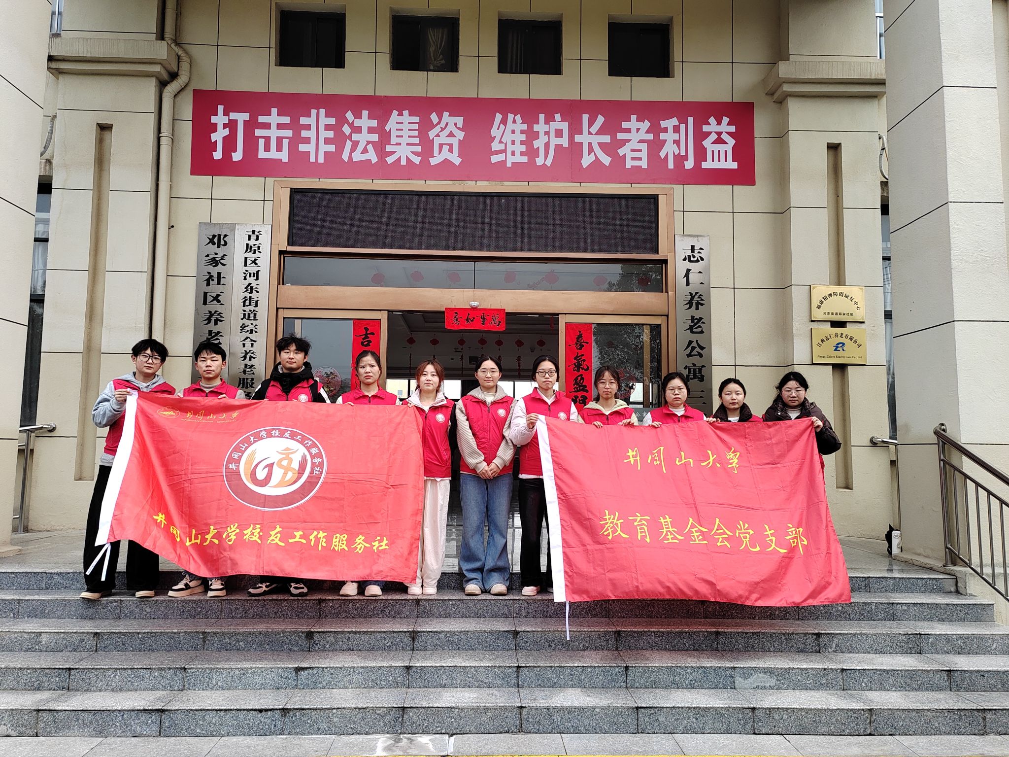 阳春三月,春风送暖。3月8日正值“三八”国际劳动妇女节,学校教育基金会党支部率井冈山大学校友工作服务社联合吉安义工协会,共同走进青原区志仁养老院三部,开展学雷锋志愿服务活动,为院内的老人们送上真挚的节日祝福与暖心关怀,用青春温情点亮春日的养老院。