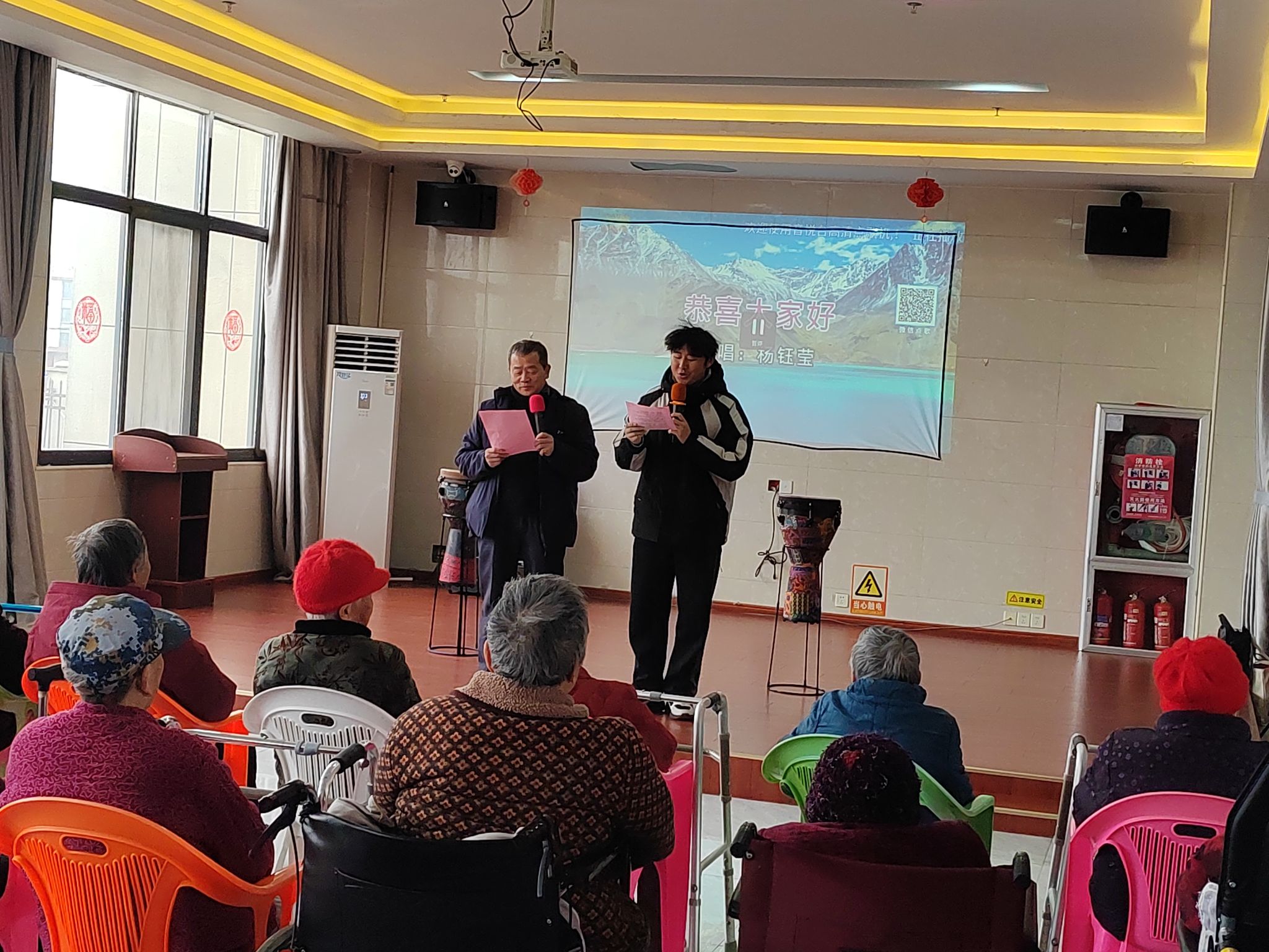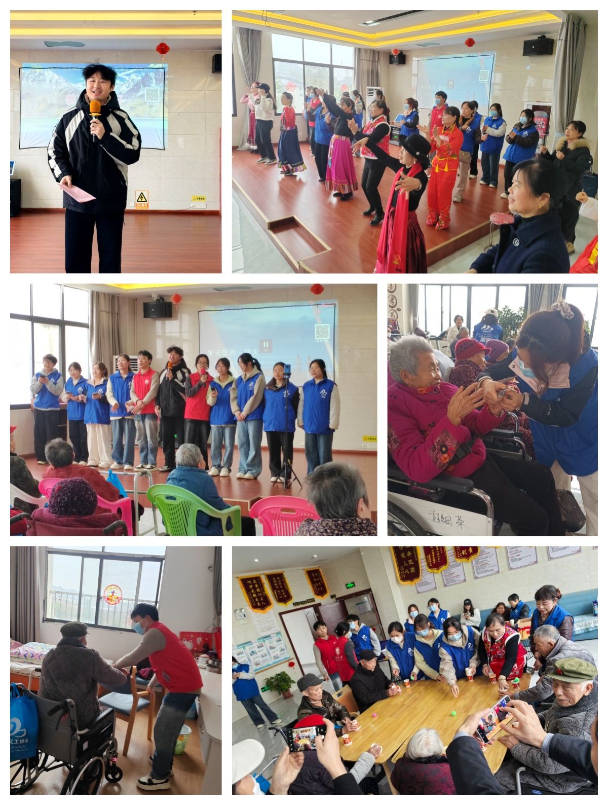 活动现场暖意融融、气氛温馨,处处洋溢着欢乐与祥和。丰富多彩的文艺节目依次登台亮相,轻快的鼓点、优美的舞姿、深情的演唱与经典的戏曲唱腔相互交织,为平日里安静的院落增添了满满的生机与活力,台下不时响起阵阵热烈的掌声,欢声笑语回荡在养老院的每一个角落。